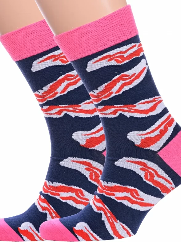 Комплект носков унисекс из 2 пар, круглогодичные, средней длины, цвет синие, повседневные, возможно бесшовные, принт (рисунок): с узором, контрастные пятка / мысок / резинка, еда и напитки, состав: 75% хлопок, 23% полиамид, 2% эластан, арт. 2-нус80128-04-14. Производитель «Китай, страна бренда - Россия» под брендом «Hobby line».