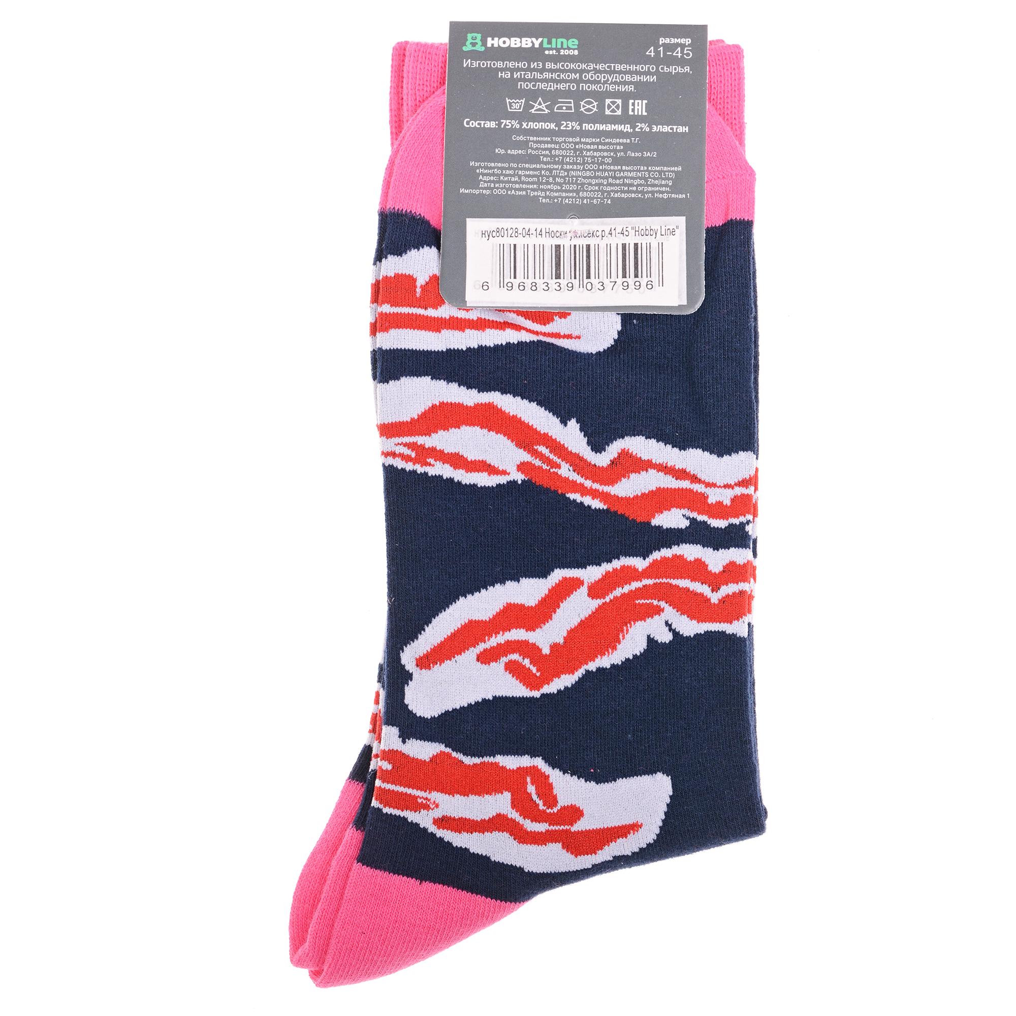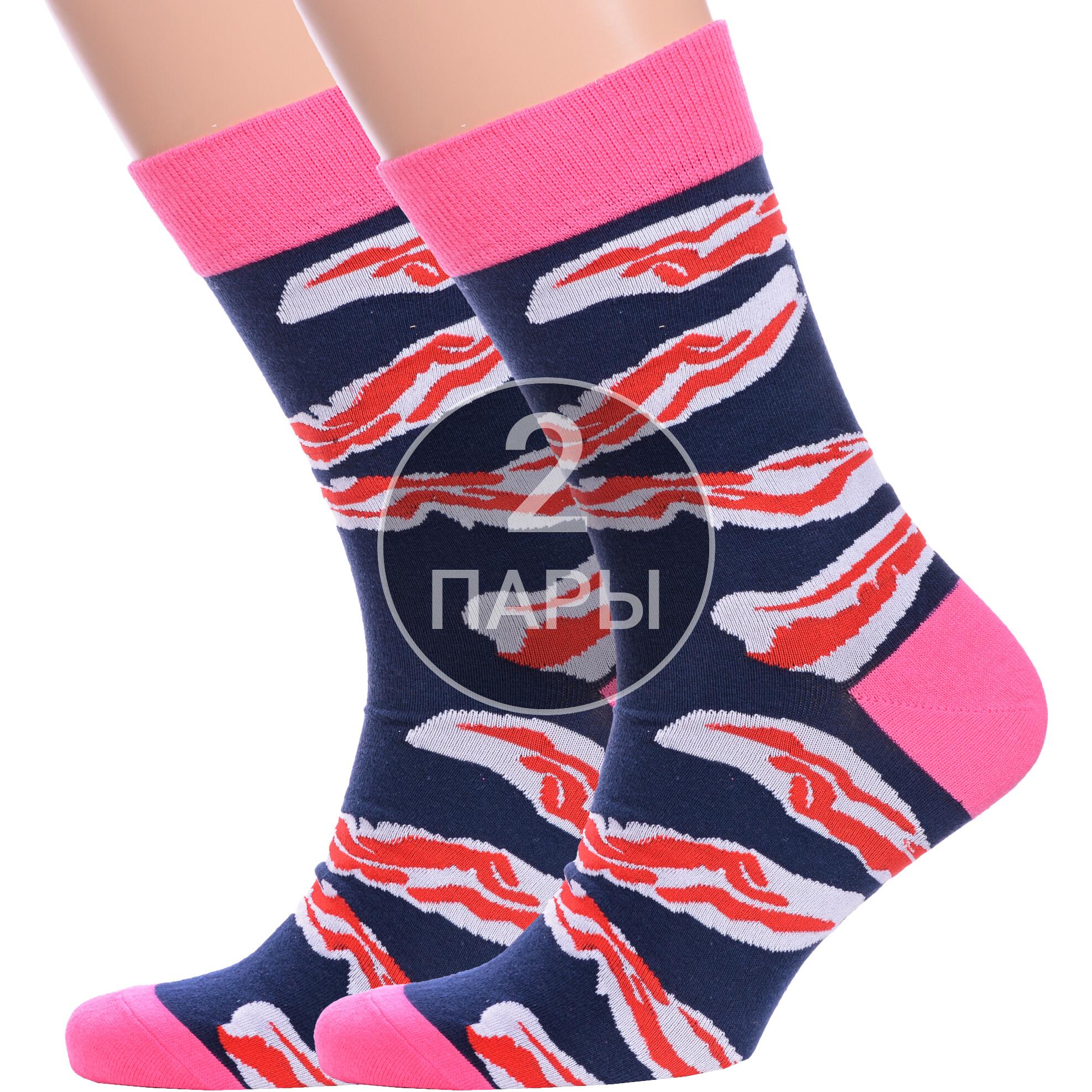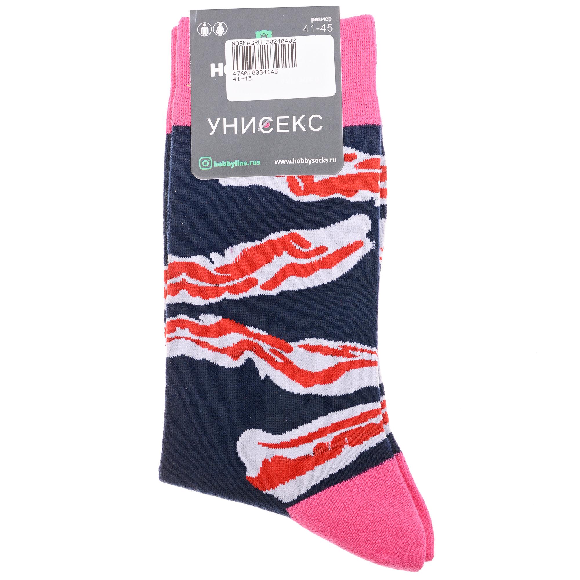Комплект носков унисекс из 2 пар, круглогодичные, средней длины, цвет синие, повседневные, возможно бесшовные, принт (рисунок): с узором, контрастные пятка/мысок/резинка, вкусности, состав: 75% хлопок, 23% полиамид, 2% эластан, арт. 2-нус80128-04-14. Производитель «Китай, страна бренда - Россия» под брендом «Hobby line».