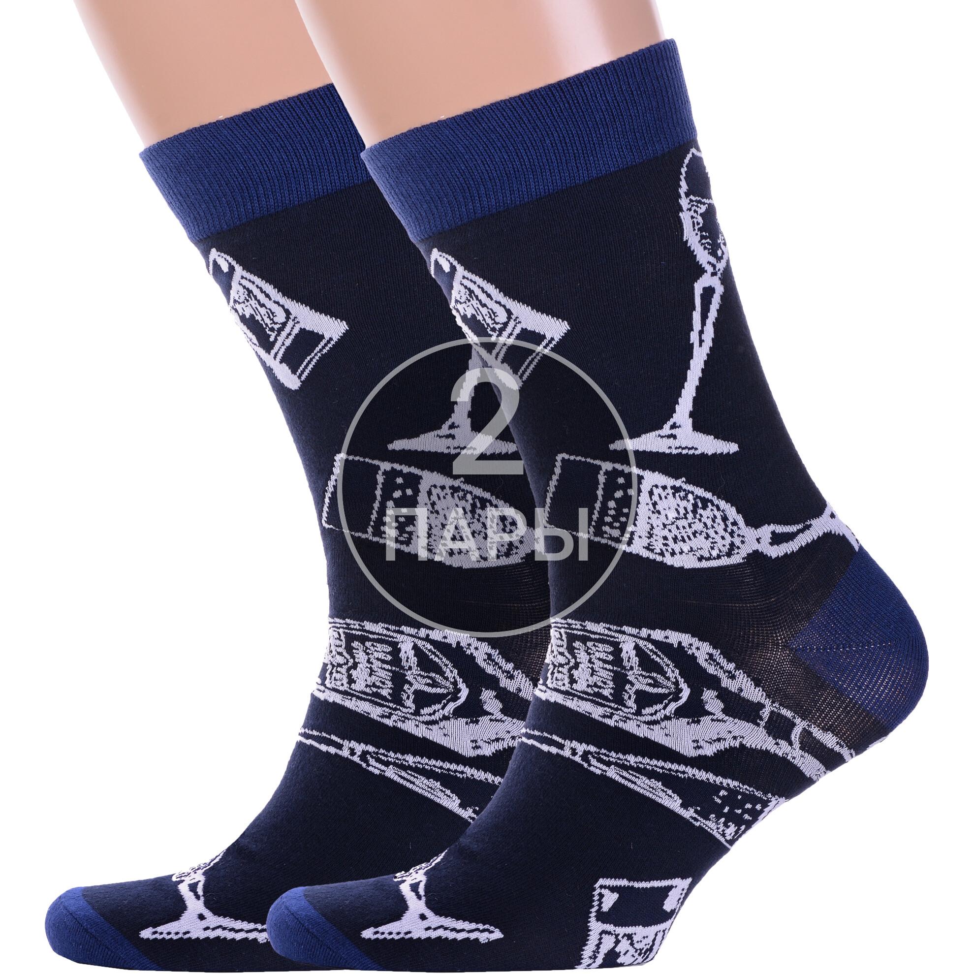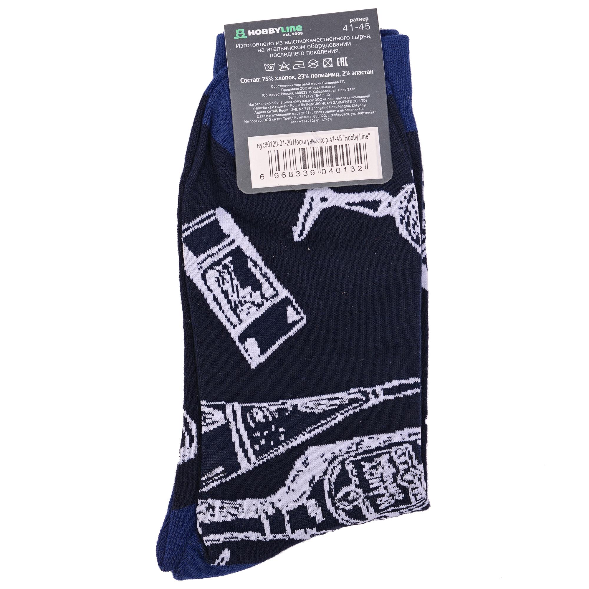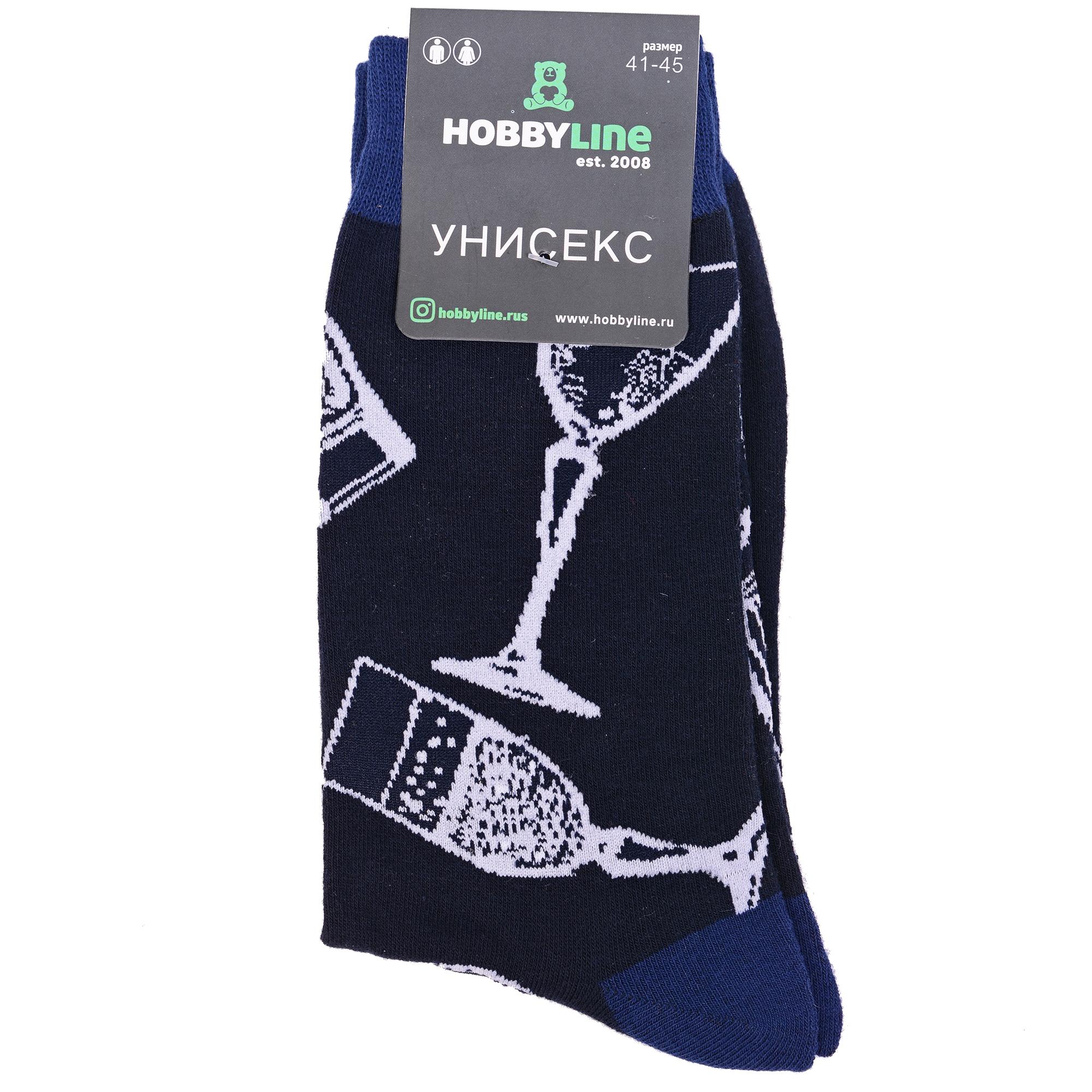 Комплект носков унисекс из 2 пар, круглогодичные, средней длины, цвет темно-синие, повседневные, возможно бесшовные, принт (рисунок): контрастные пятка/мысок/резинка, дерзости / вредные привычки, с узором, состав: 75% хлопок, 23% полиамид, 2% эластан, арт. 2-нус80129-01-20. Производитель «Китай, страна бренда - Россия» под брендом «Hobby line».