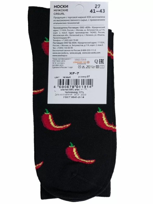 В комплект входят 2 пары носков разных артикулов с индивидуальными фабричными этикетками: XF-7 черные, XF-16 мультиколор.