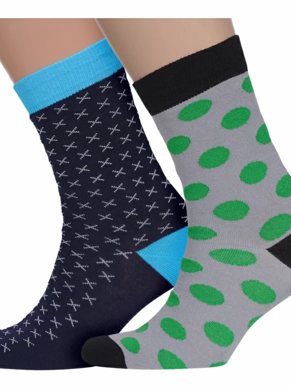 Комплект из 2 пар носков ХОХ FANTASY для мужчин и женщин: с принтами и контрастными мыском, пяткой и резинкой.