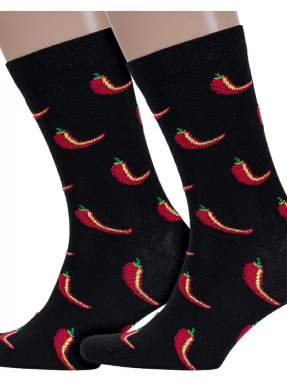 Модель средней длины с принтом в виде перцев и с двойным бортом (манжетом резинки). Изготовлены на фабрике в Подмосковье из хлопка с добавлением полиамида и эластана для износостойкости изделия и комфортной посадки.