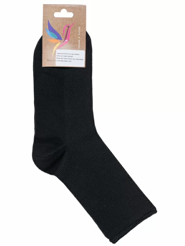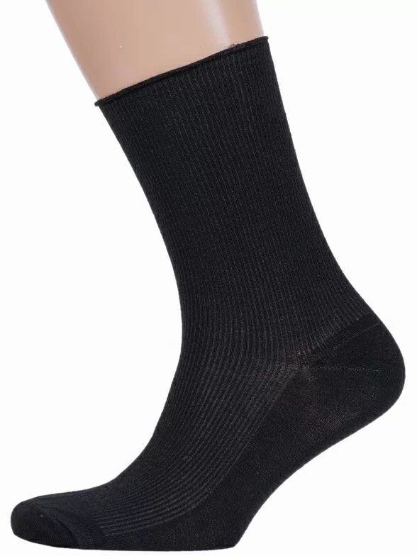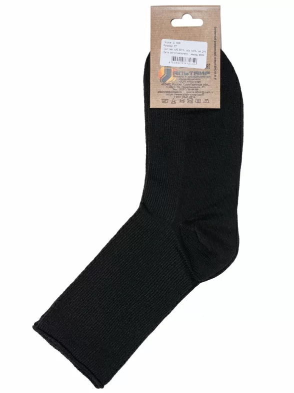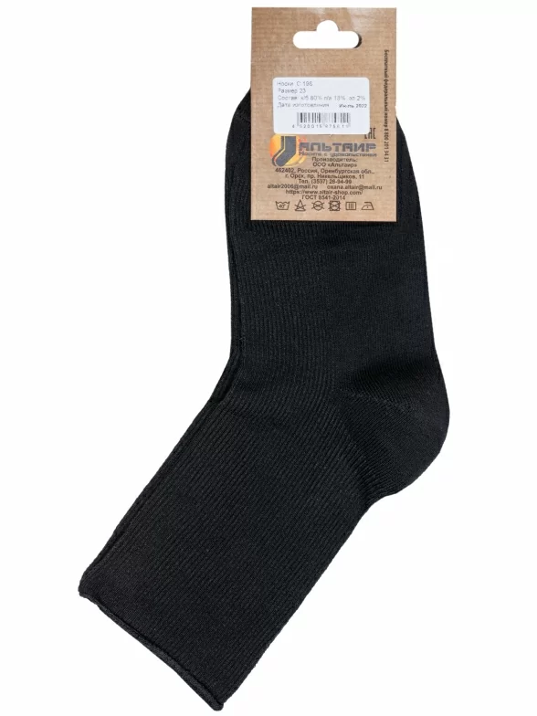 Комплект носков унисекс из 2 пар, круглогодичные, средней длины, цвет черный, медицинские, шов обычный (не бесшовные), принт (рисунок): в рубчик, однотонный, состав: 80% хлопок, 18% полиамид, 2% эластан, арт. 2-С198. Производитель «ООО Альтаир, г. Орск, Оренбургская обл, Россия» под брендом «Альтаир».