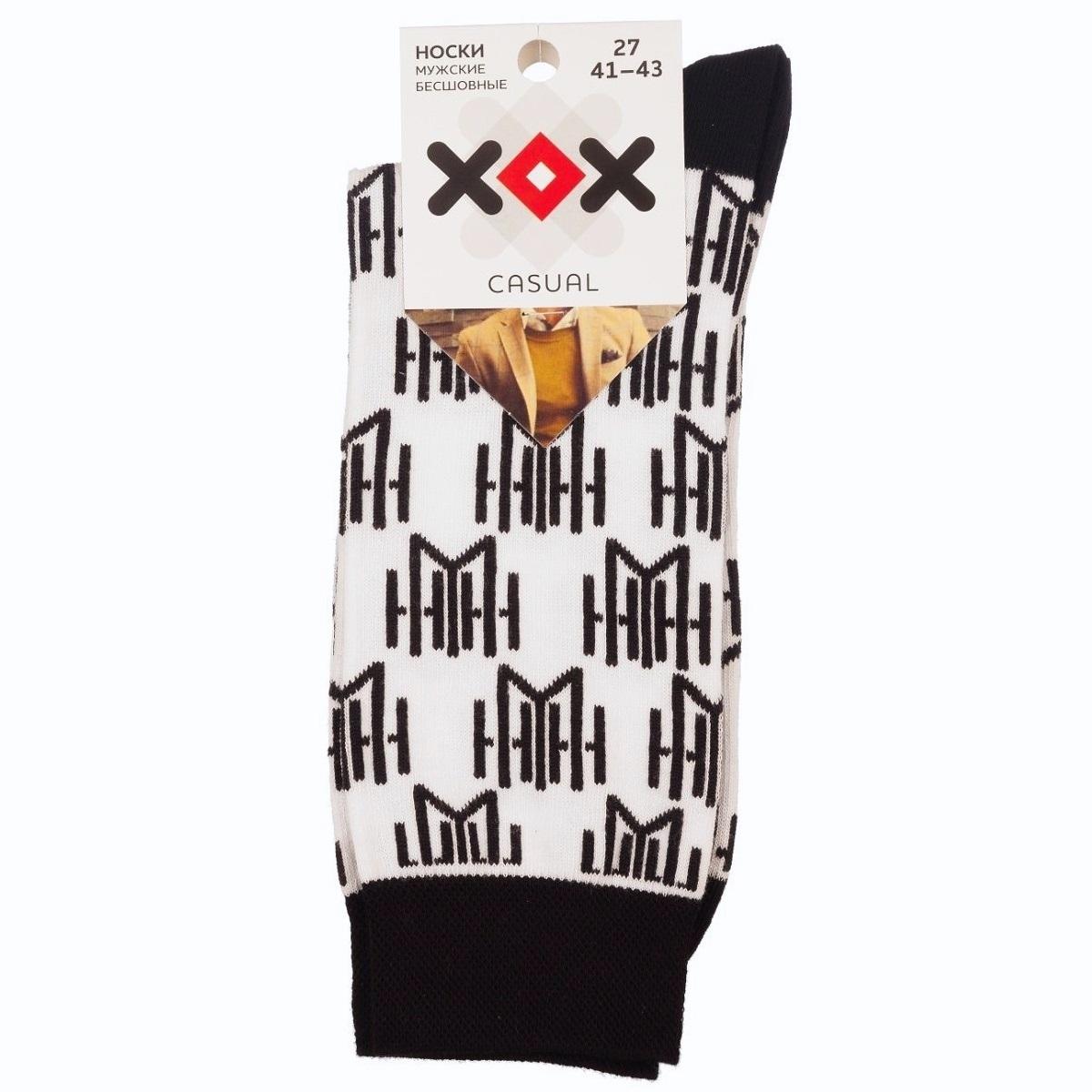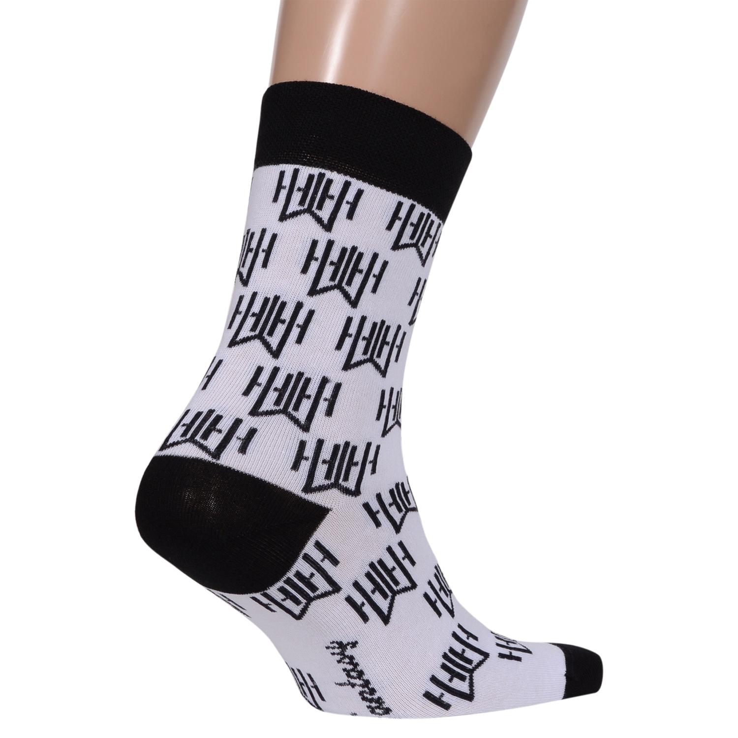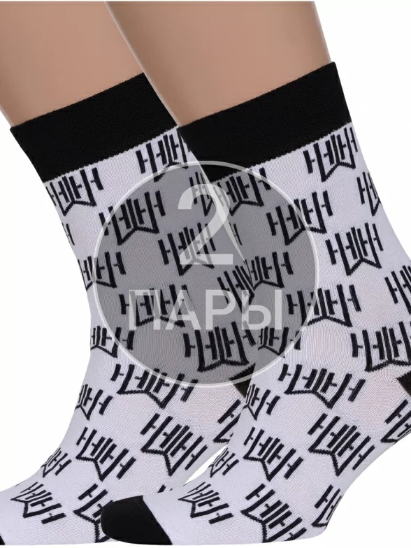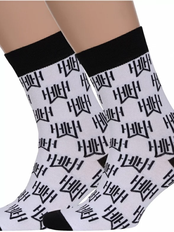 Комплект носков унисекс из 2 пар, круглогодичные, средней длины, цвет белый, повседневные, возможно бесшовные, принт (рисунок): крупные контрастные рисунки, с узором, абстрактный, состав: 88% хлопок, 10% полиамид, 2% эластан, арт. 2-XF-20. Производитель «ХОХ FANTASY» Россия под брендом «Хох fantasy».
