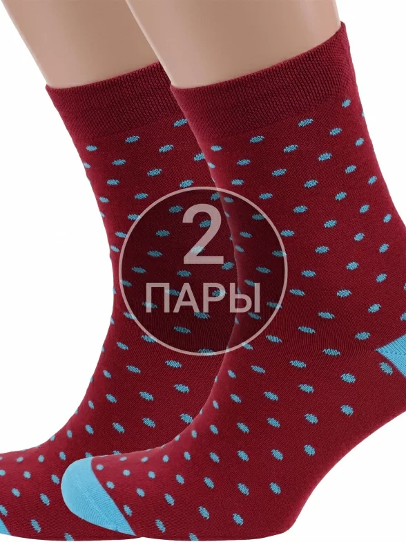Комплект носков унисекс из 2 пар, круглогодичные, средней длины, цвет бордовый, повседневные, возможно бесшовные, принт (рисунок): мелкий принт, горох / точка, с узором, состав: 88% хлопок, 10% полиамид, 2% эластан, арт. 2-XF-27. Производитель «ХОХ FANTASY» Россия под брендом «Хох fantasy».