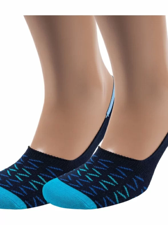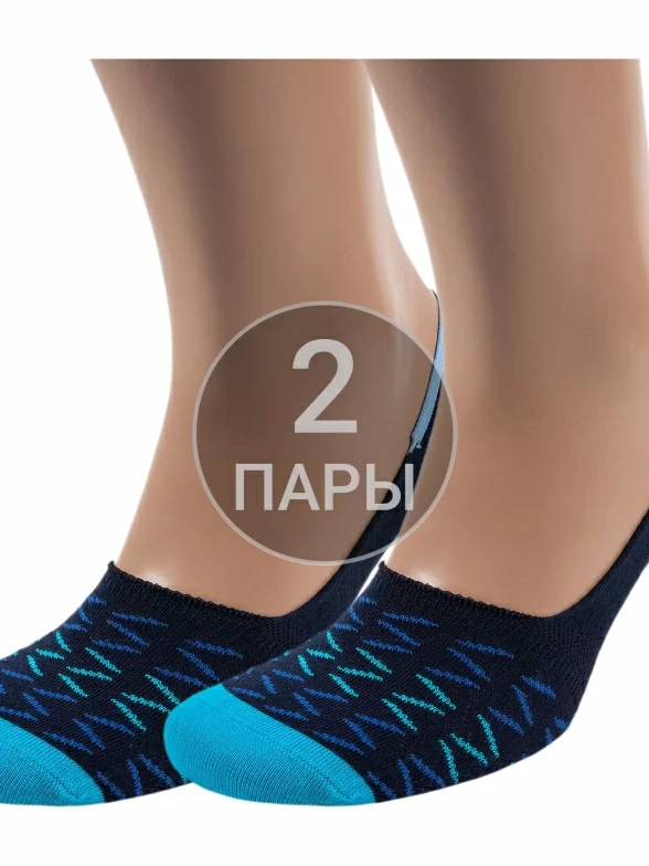 Комплект подследников унисекс из 2 пар, летние, цвет темно-синие, повседневные, возможно бесшовные, принт (рисунок): геометрия, с узором, состав: 88% хлопок, 10% полиамид, 2% эластан, арт. 2-SF-1. Производитель «ХОХ FANTASY» Россия под брендом «Хох fantasy».