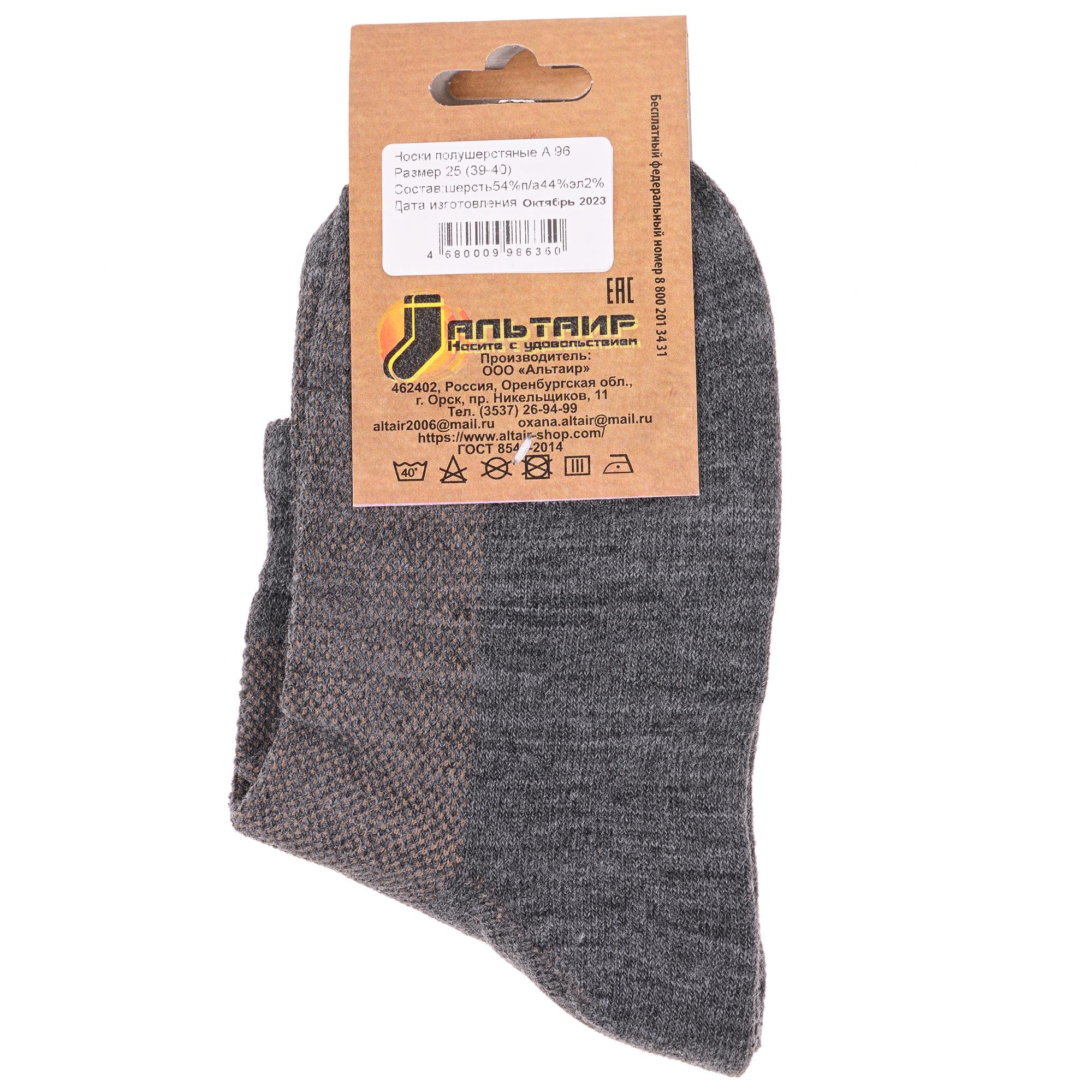 Комплект носков унисекс из 2 пар, зимние, укороченные, цвет серый, теплые, шов обычный (не бесшовные), принт (рисунок): с узором, однотонный, состав: 54% шерсть, 44% полиамид, 2% эластан, арт. 2-А96. Производитель «ООО Альтаир, г. Орск, Оренбургская обл, Россия» под брендом «Альтаир».