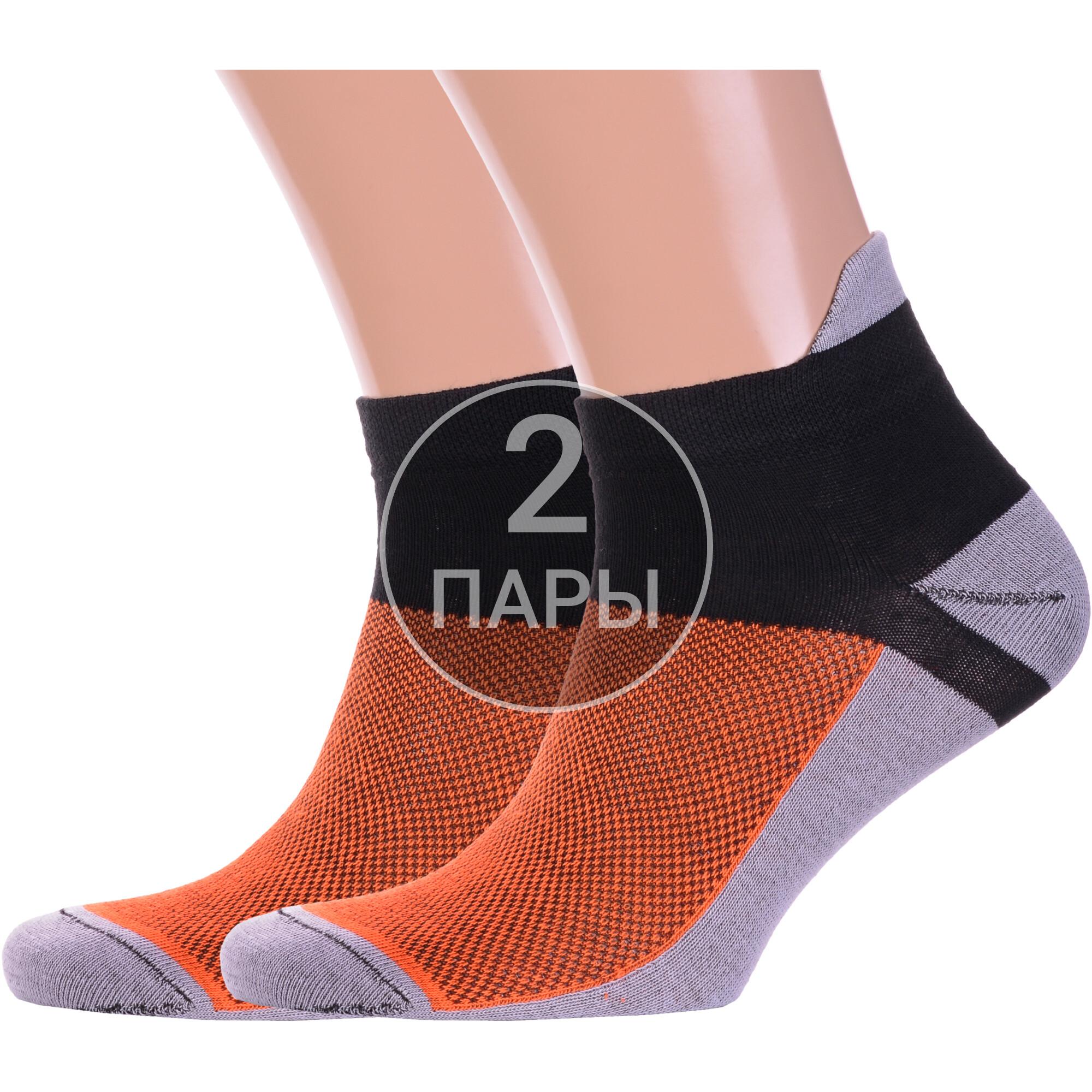 Комплект носков унисекс из 2 пар, круглогодичные, короткие, цвет серо-оранжевый, в сеточку, спортивные, возможно бесшовные, принт (рисунок): с узором, спортивные, состав: 80% хлопок, 18% полиамид, 2% эластан, арт. 2-А216. Производитель «ООО Альтаир, г. Орск, Оренбургская обл, Россия» под брендом «Альтаир».