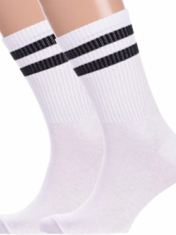 Комплект носков унисекс из 2 пар, круглогодичные, средней длины, цвет белый, спортивные, повседневные, возможно бесшовные, принт (рисунок): с узором, в рубчик, полоски, состав: 80% хлопок, 17% полиамид, 3% эластан, арт. 2-С-109. Производитель «ООО Производственная компания "ДСМ", Россия» под брендом «Grand line».