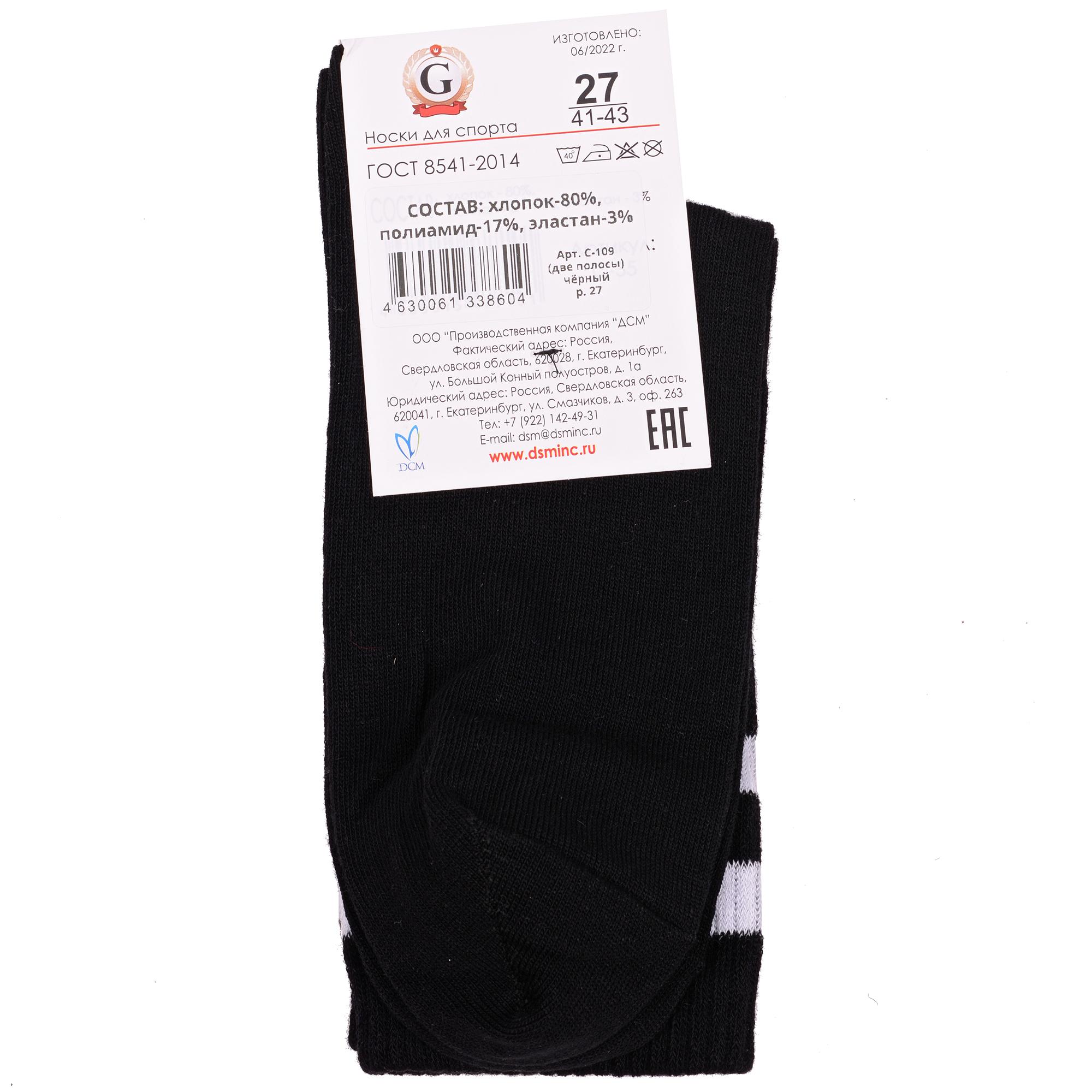 Комплект носков унисекс из 2 пар, круглогодичные, средней длины, цвет черный, спортивные, повседневные, возможно бесшовные, принт (рисунок): с узором, полоски, в рубчик, состав: 80% хлопок, 17% полиамид, 3% эластан, арт. 2-С-109. Производитель «ООО Производственная компания "ДСМ", Россия» под брендом «Grand line».