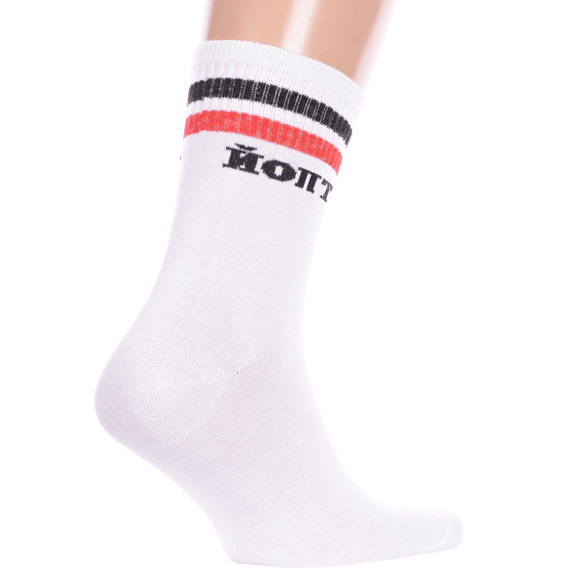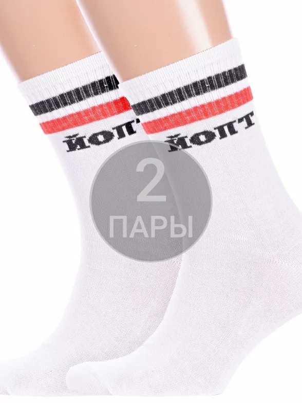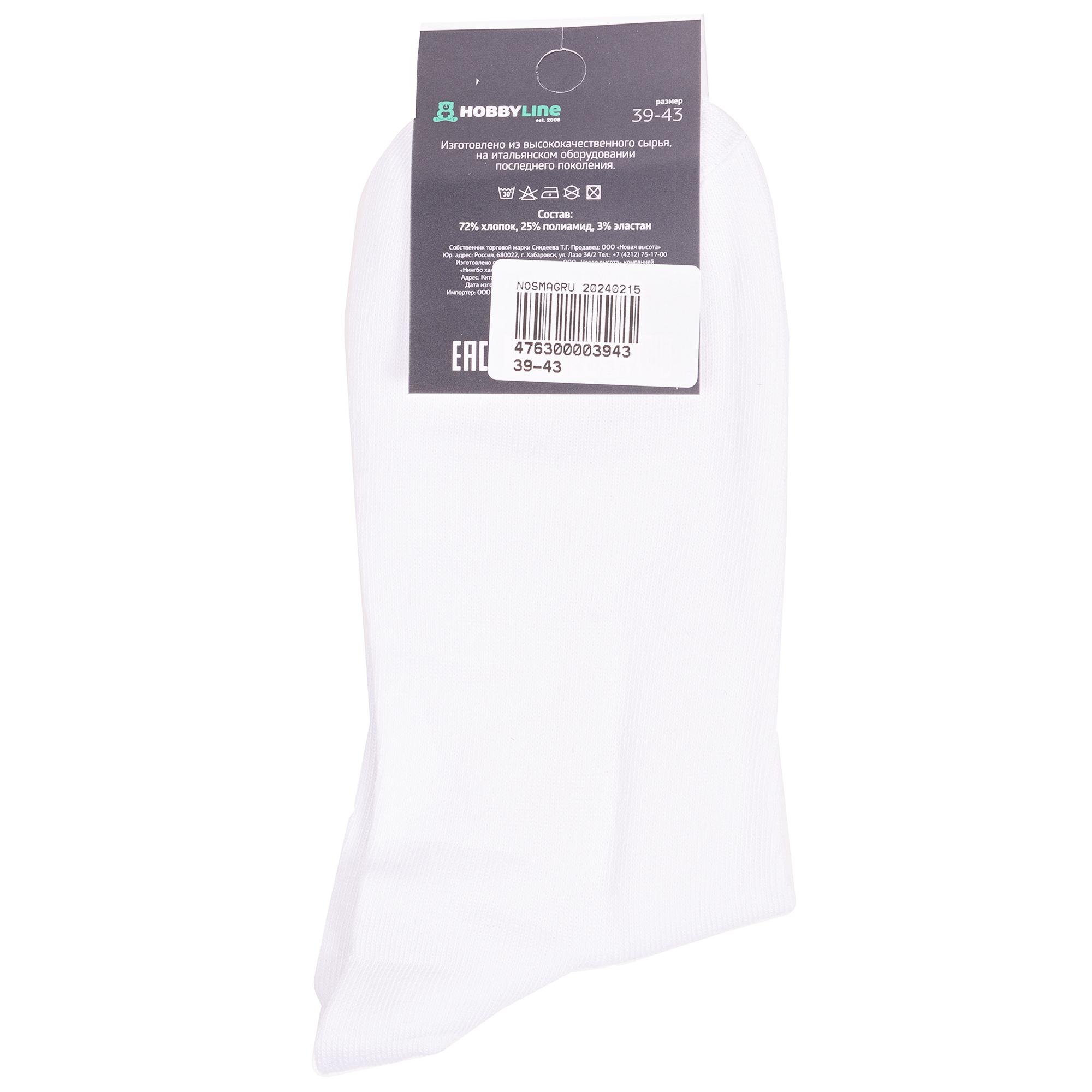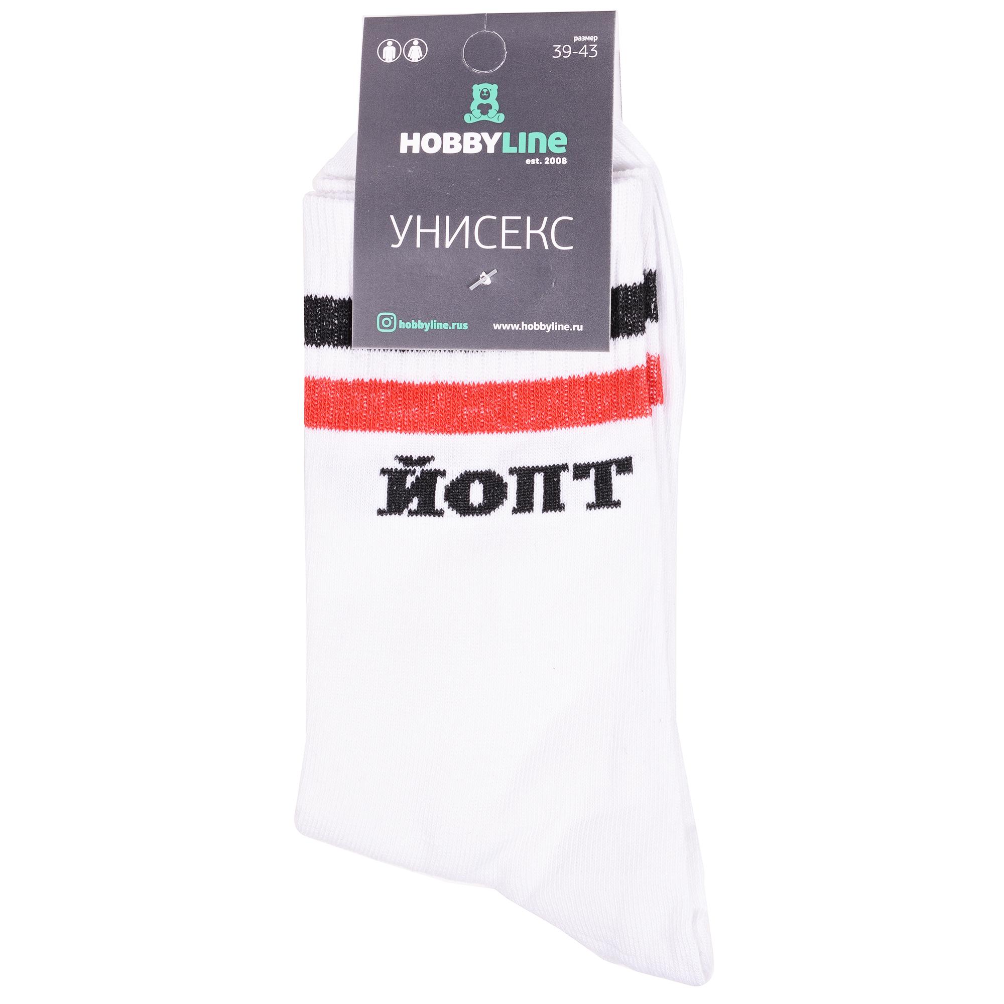 Комплект носков унисекс из 2 пар, круглогодичные, средней длины, цвет белый, спортивные, повседневные, возможно бесшовные, принт (рисунок): надписи, с узором, состав: 72% хлопок, 25% полиамид, 3% эластан, арт. 2-нус80159-35-01. Производитель «Китай, страна бренда - Россия» под брендом «Hobby line».