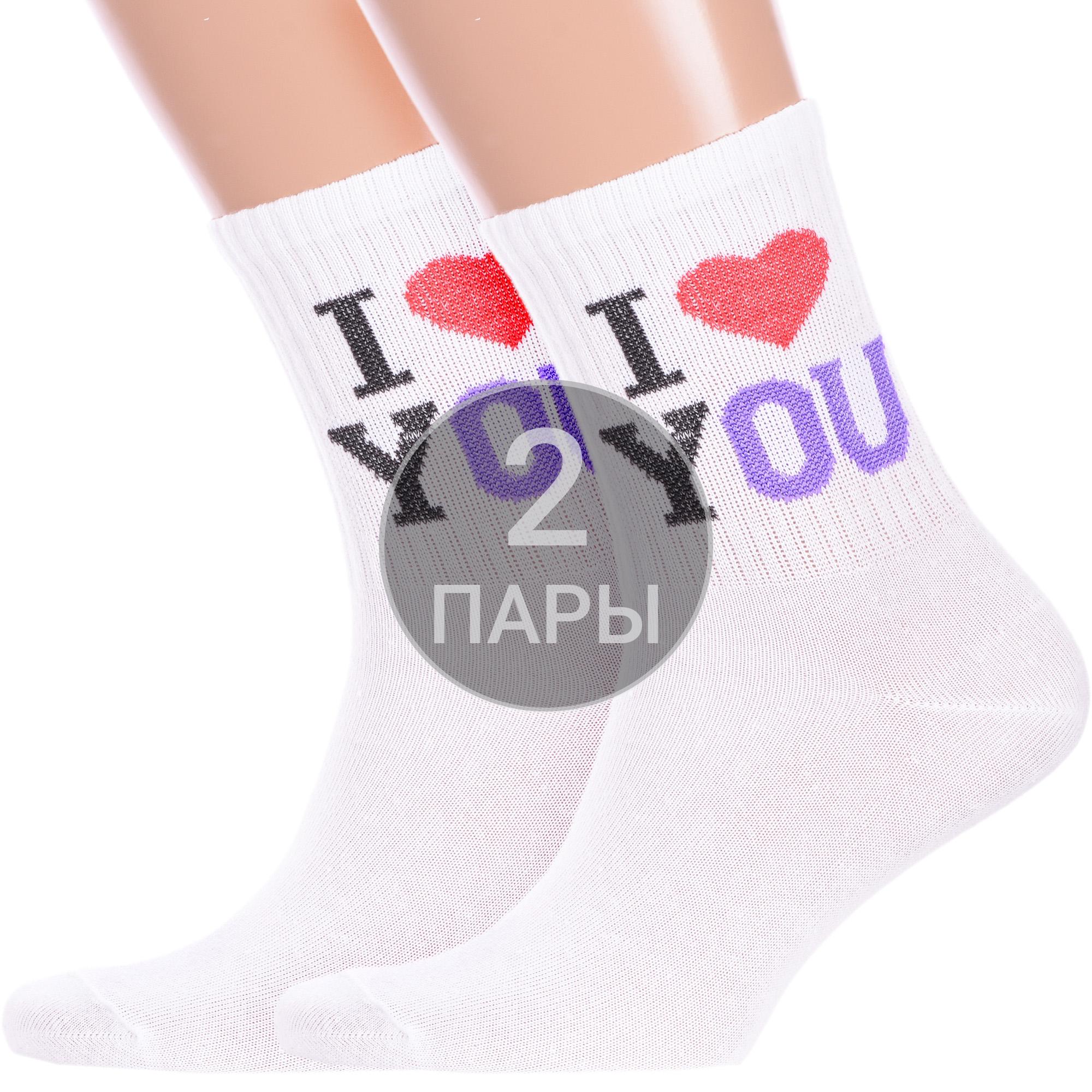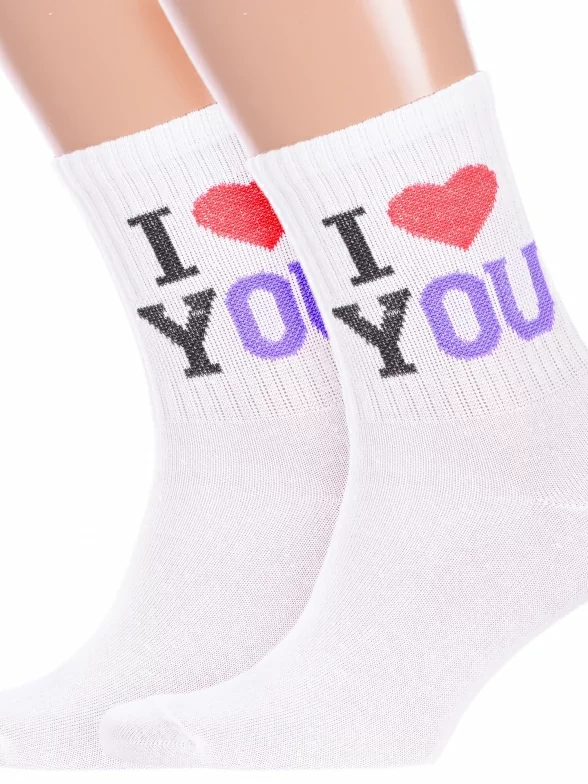 Комплект носков унисекс из 2 пар, круглогодичные, средней длины, цвет белый, спортивные, повседневные, возможно бесшовные, принт (рисунок): сердечки / поцелуи / любовь, надписи, с узором, состав: 72% хлопок, 25% полиамид, 3% эластан, арт. 2-нус80159-51-17-04. Производитель «Китай, страна бренда - Россия» под брендом «Hobby line».