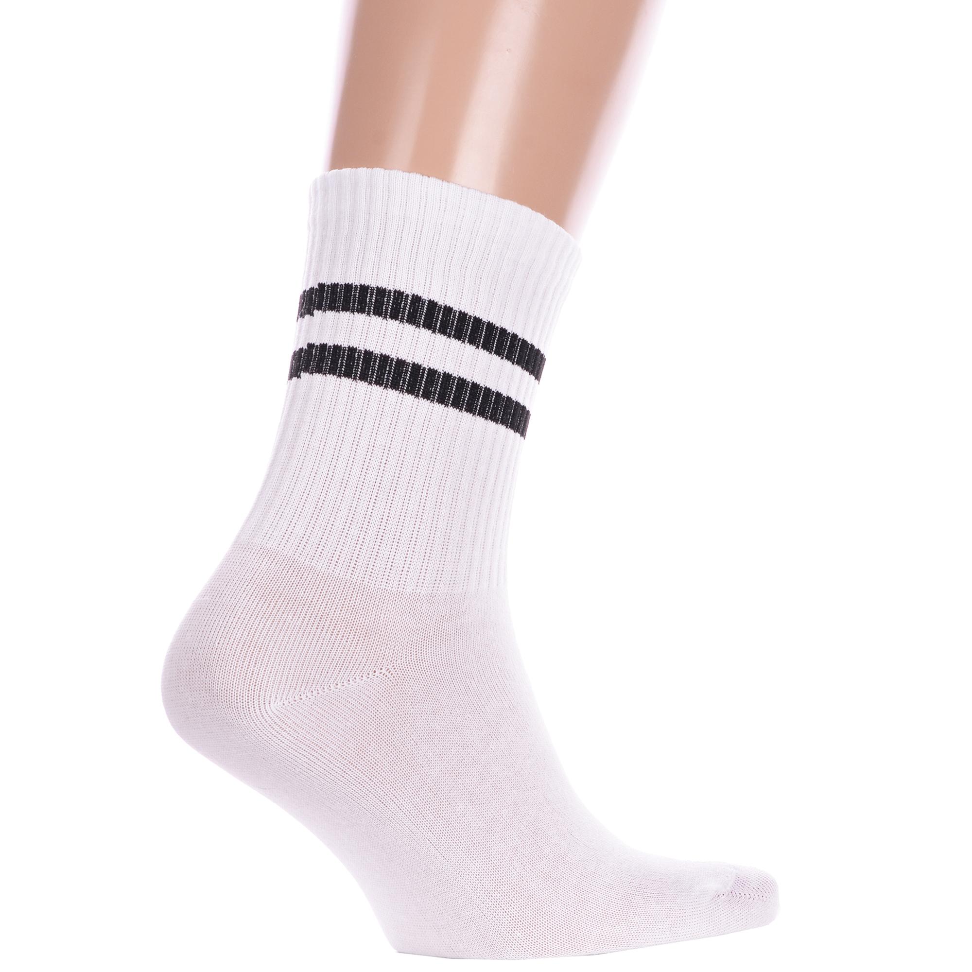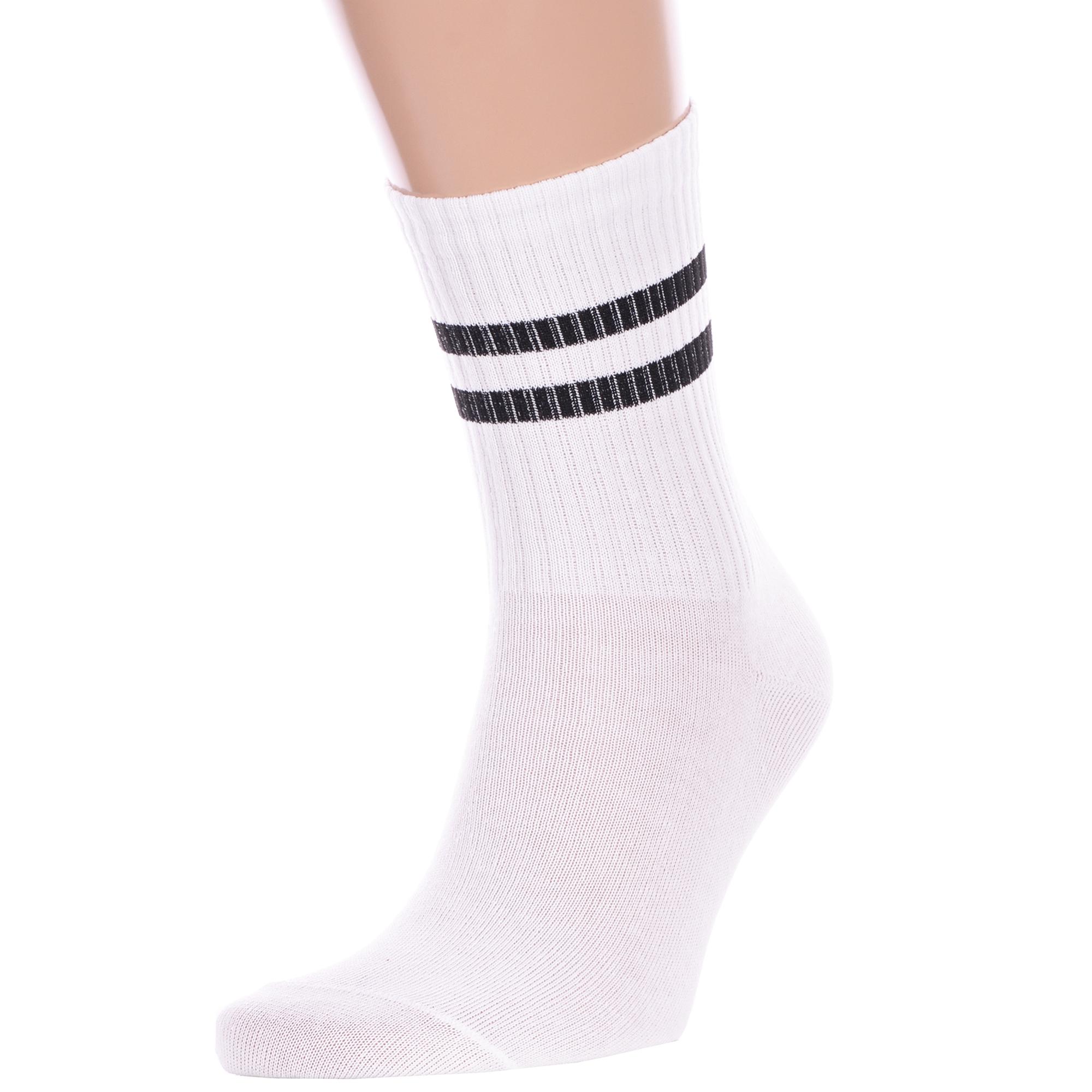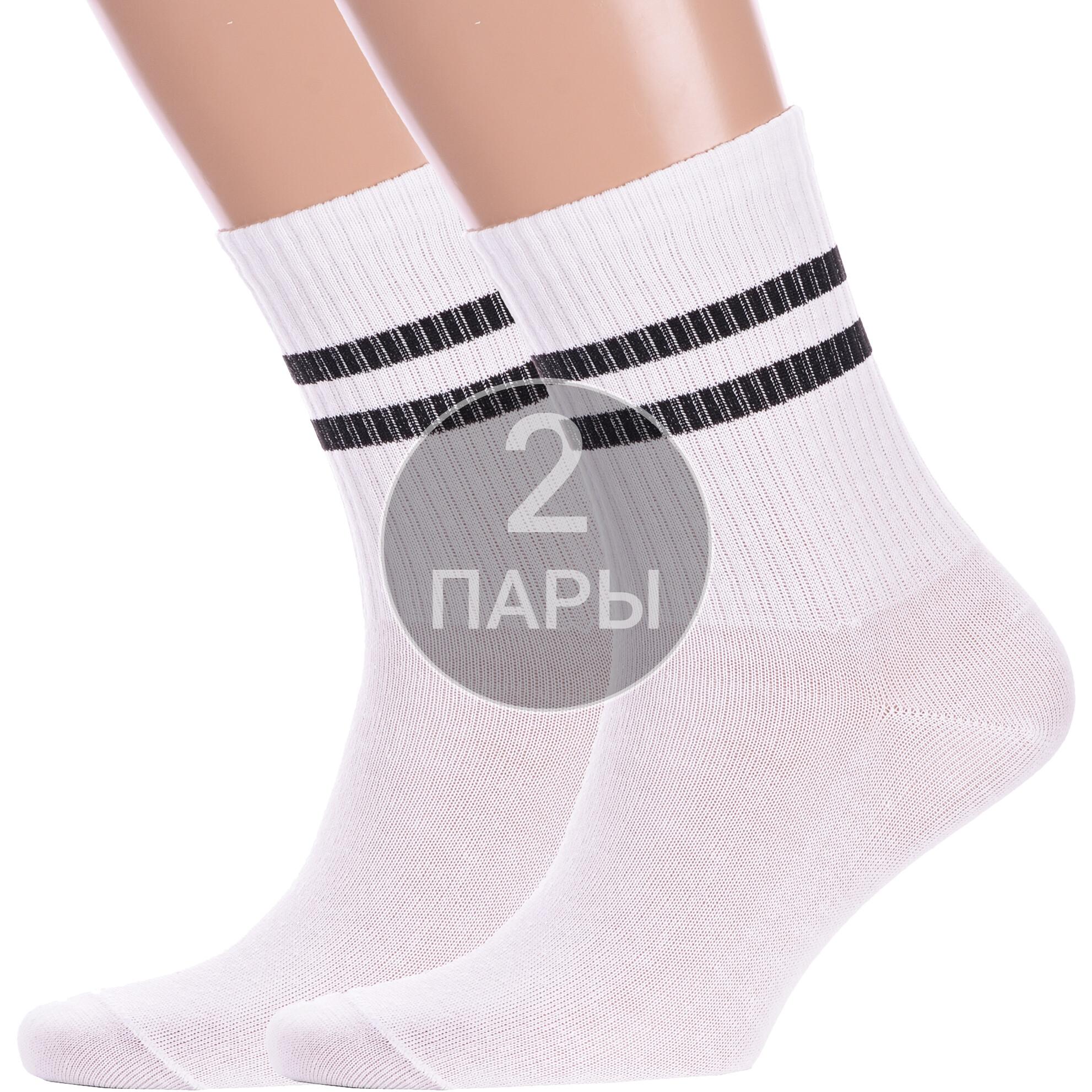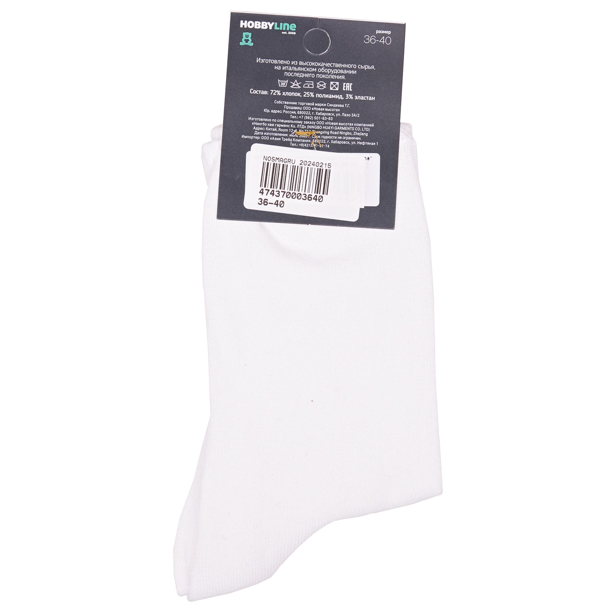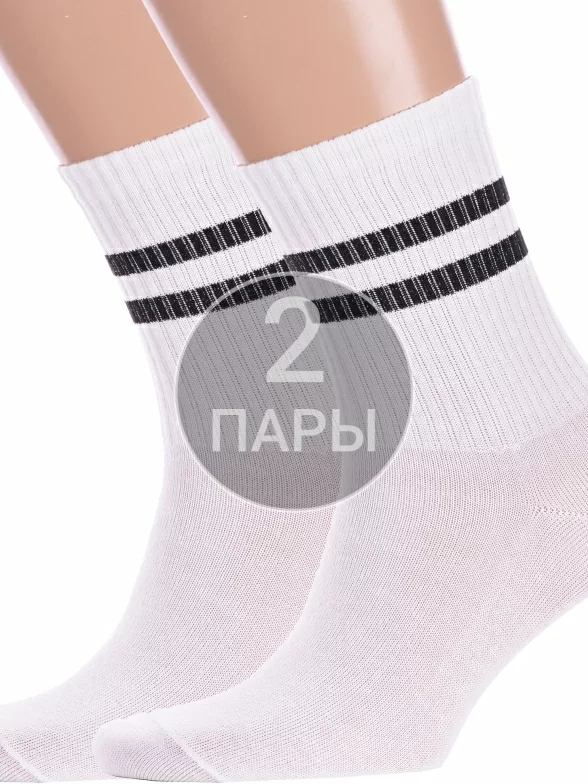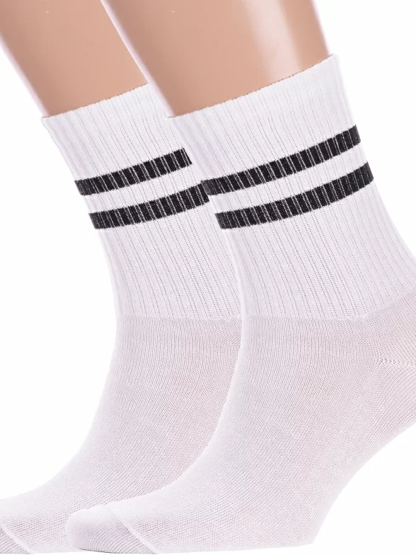 Комплект носков унисекс из 2 пар, круглогодичные, средней длины, цвет белый, повседневные, спортивные, возможно бесшовные, принт (рисунок): с узором, полоски, состав: 72% хлопок, 25% полиамид, 3% эластан, арт. 2-нус80159-52-07. Производитель «Китай, страна бренда - Россия» под брендом «Hobby line».