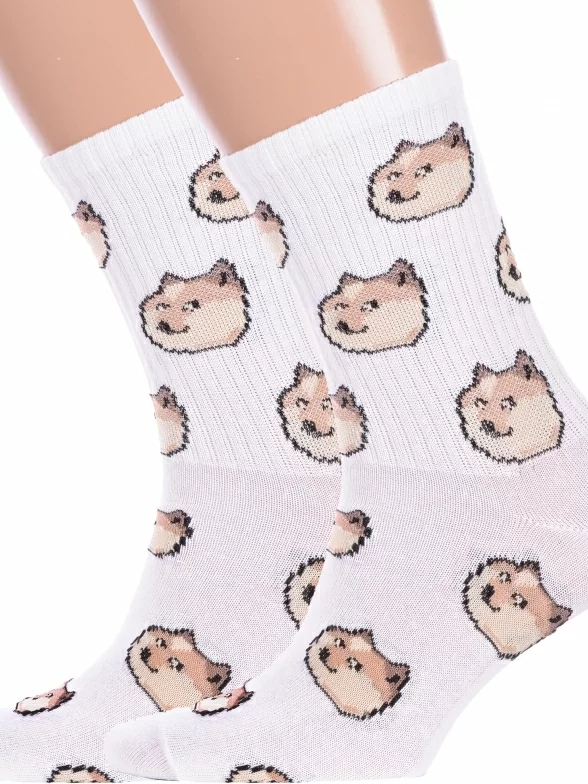 Комплект носков унисекс из 2 пар, круглогодичные, средней длины, цвет белый, повседневные, спортивные, возможно бесшовные, принт (рисунок): с узором, животные, состав: 72% хлопок, 25% полиамид, 3% эластан, арт. 2-нус80186. Производитель «Китай, страна бренда - Россия» под брендом «Hobby line».
