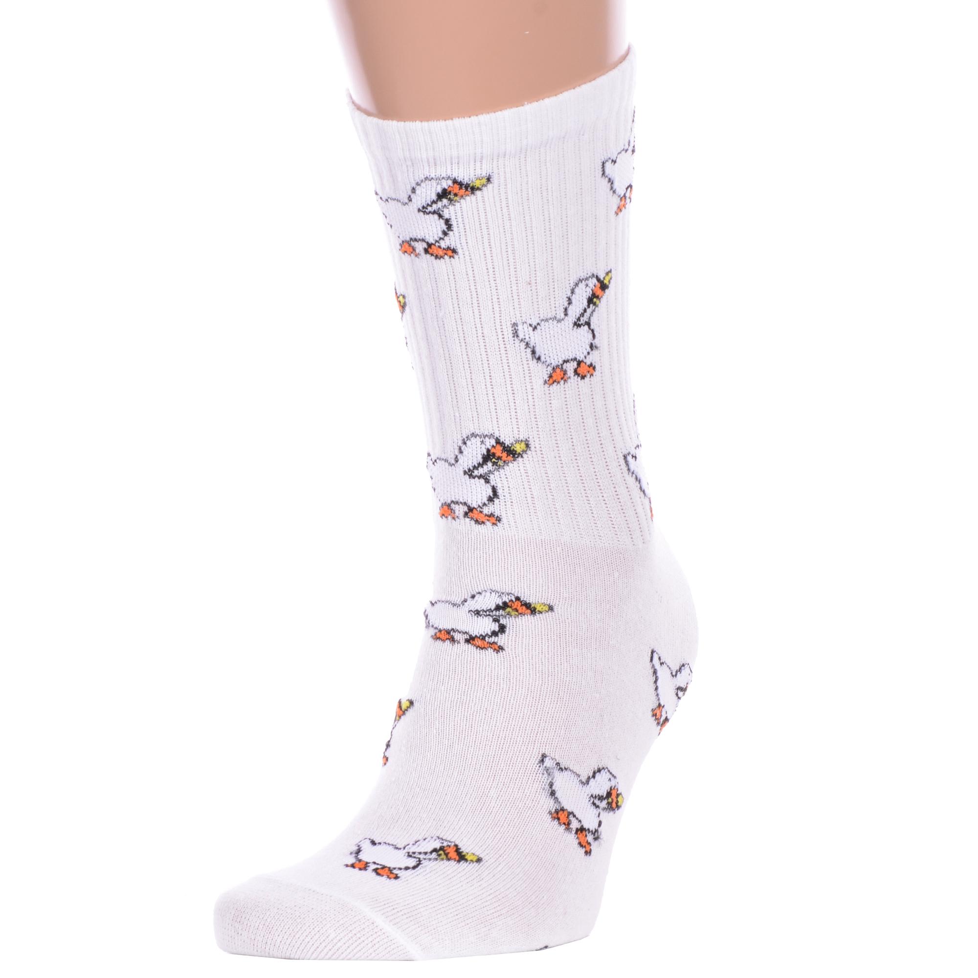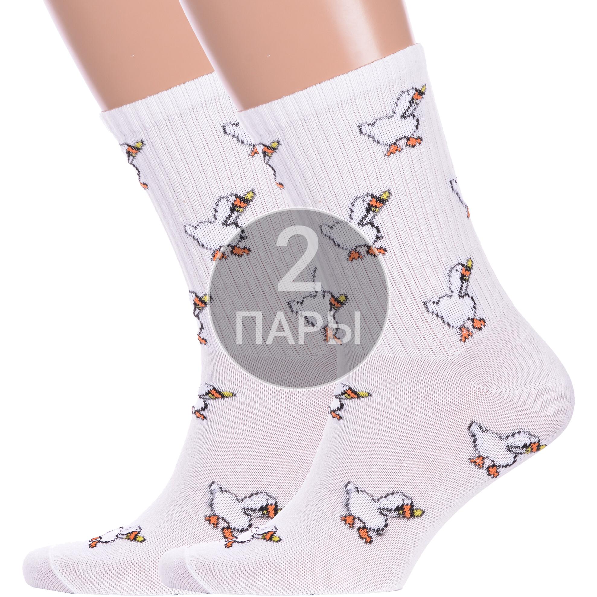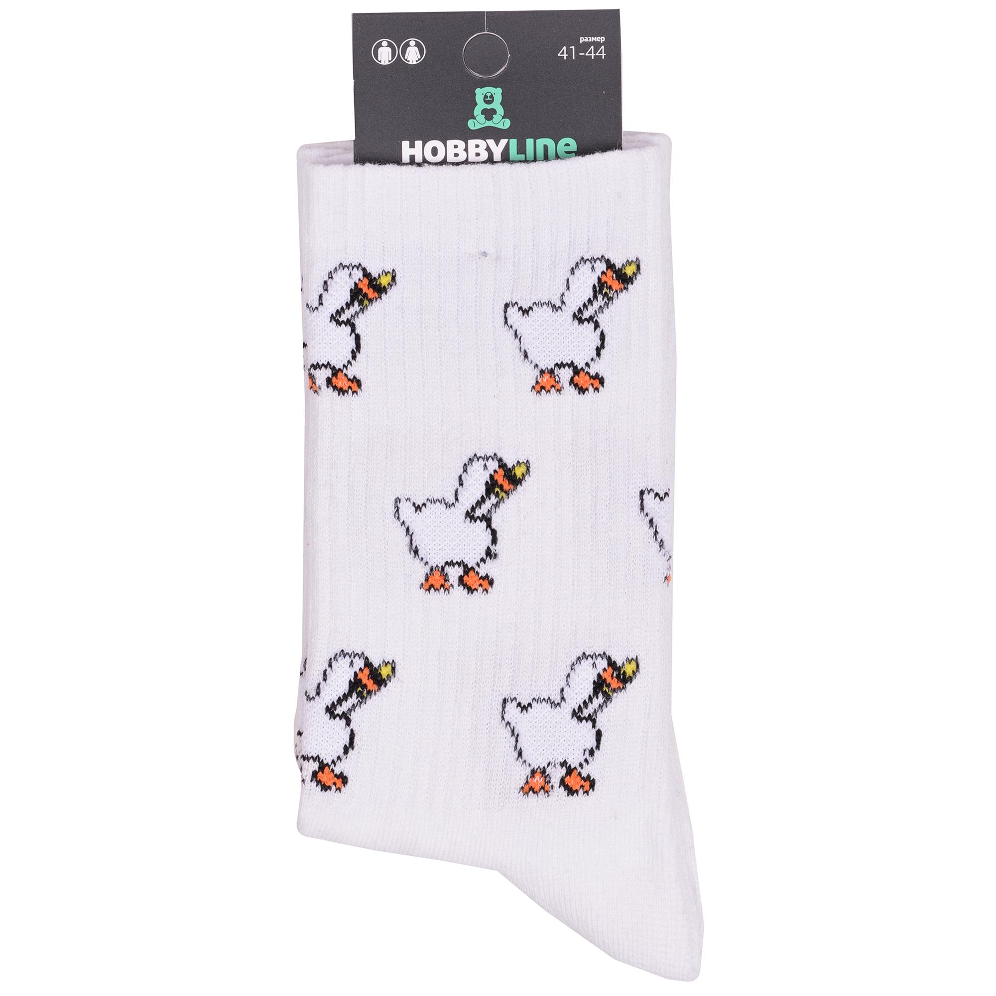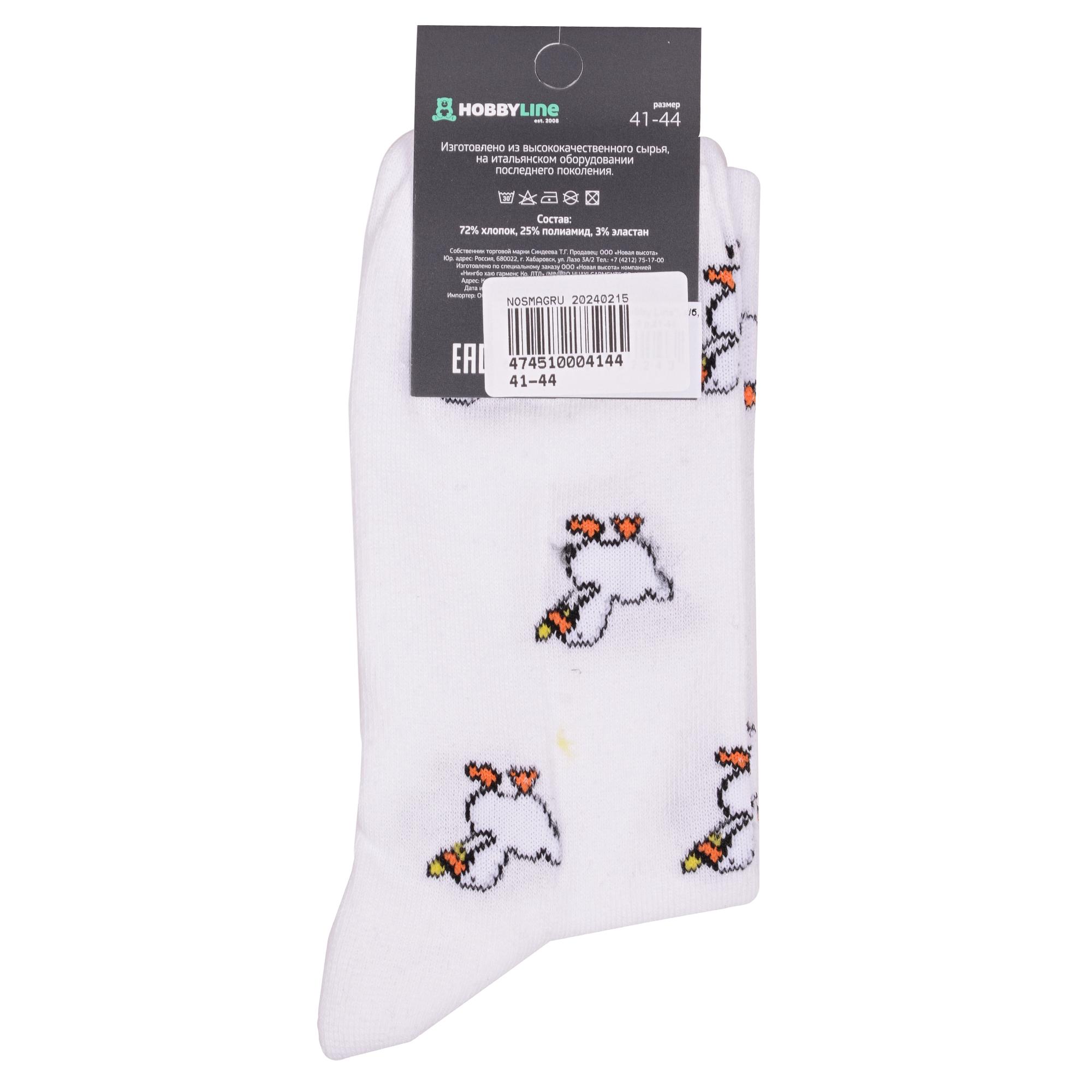 Комплект носков унисекс из 2 пар, круглогодичные, средней длины, цвет белый, спортивные, повседневные, возможно бесшовные, принт (рисунок): с узором, животные, состав: 72% хлопок, 25% полиамид, 3% эластан, арт. 2-нус80187. Производитель «Китай, страна бренда - Россия» под брендом «Hobby line».