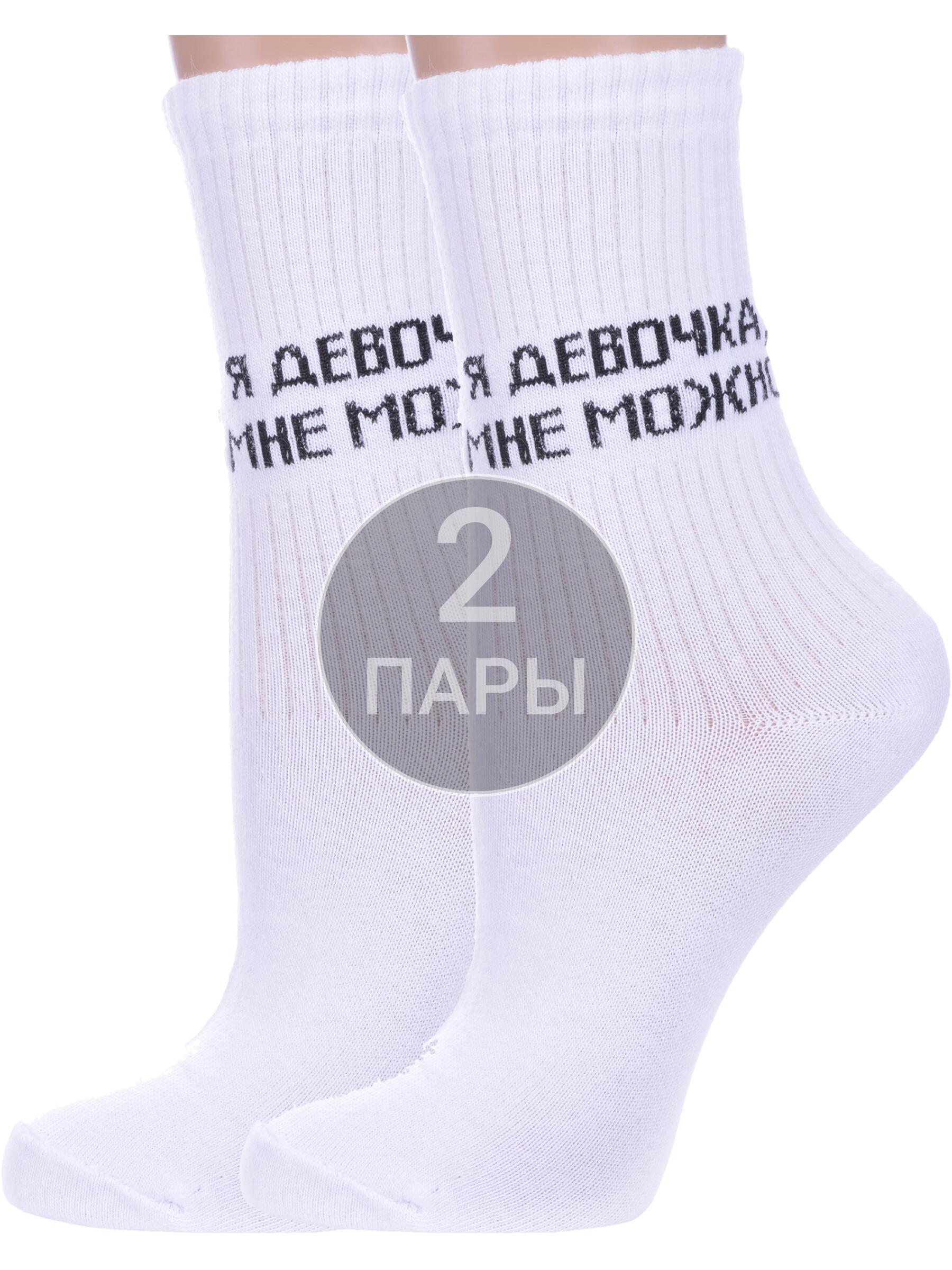 Комплект женских носков из 2 пар, круглогодичные, средней длины, цвет белый, спортивные, шов обычный (не бесшовные), принт (рисунок): надписи, в рубчик, состав: 80% хлопок, 18% полиамид, 2% эластан, арт. 2-М102-11. Производитель «ООО Альтаир, г. Орск, Оренбургская обл, Россия» под брендом «Альтаир».