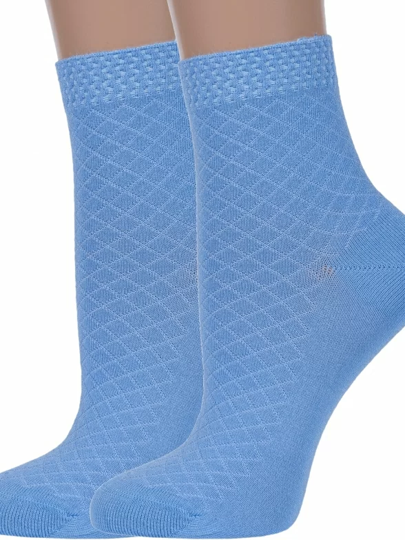 Комплект женских носков из 2 пар, летние или межсезонные, укороченные, цвет голубой, в сеточку, повседневные, шов кеттельный (бесшовная технология), принт (рисунок): однотонный, с узором, состав: 80% бамбук, 18% полиамид, 2% эластан, арт. 2-G-223. Производитель «ХОХ» Россия под брендом «Хох».