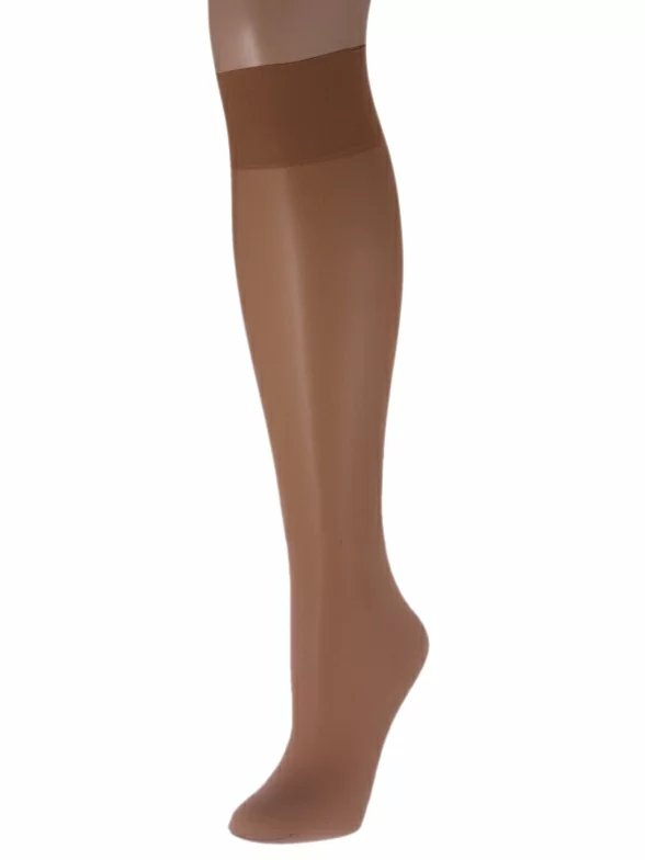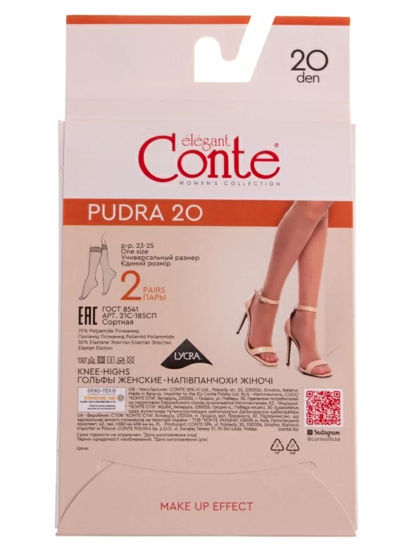 Модель плотностью 20 den без отдельно вывязанной пятки, с широкой комфортной резинкой и обычным швом на мыске. Изготовлены в Беларуси из гладкого синтетического полотна на основе 70% полиамида с добавлением 30% эластана, благодаря чему изделие износостойкое и хорошо тянется.
