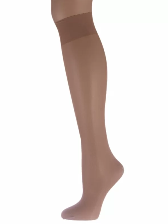 Модель плотностью 20 den без отдельно вывязанной пятки, с широкой комфортной резинкой и обычным швом на мыске. Изготовлены в Беларуси из гладкого синтетического полотна на основе 70% полиамида с добавлением 30% эластана, благодаря чему изделие износостойкое и хорошо тянется.