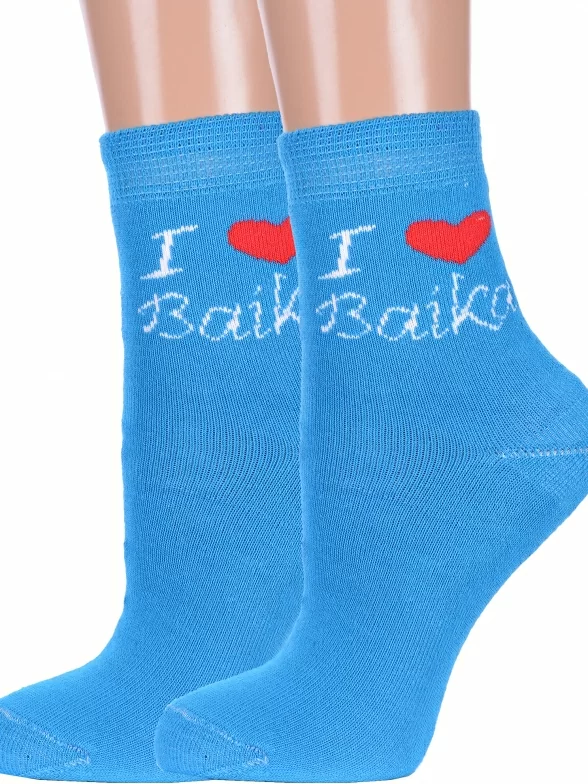 Комплект женских носков из 2 пар, межсезонные или зимние, укороченные, цвет голубой, теплые, повседневные, махровые, возможно бесшовные, принт (рисунок): сердечки / поцелуи / любовь, надписи, с узором, состав: 80% хлопок, 18% полиамид, 2% эластан, арт. 2-С102. Производитель «ООО Альтаир, г. Орск, Оренбургская обл, Россия» под брендом «Альтаир».