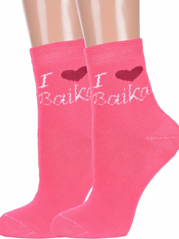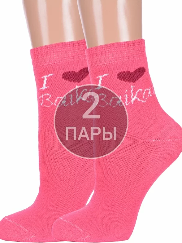 Комплект женских носков из 2 пар, межсезонные или зимние, укороченные, цвет розовый, теплые, повседневные, махровые, возможно бесшовные, принт (рисунок): сердечки / поцелуи / любовь, надписи, с узором, состав: 80% хлопок, 18% полиамид, 2% эластан, арт. 2-С102. Производитель «ООО Альтаир, г. Орск, Оренбургская обл, Россия» под брендом «Альтаир».