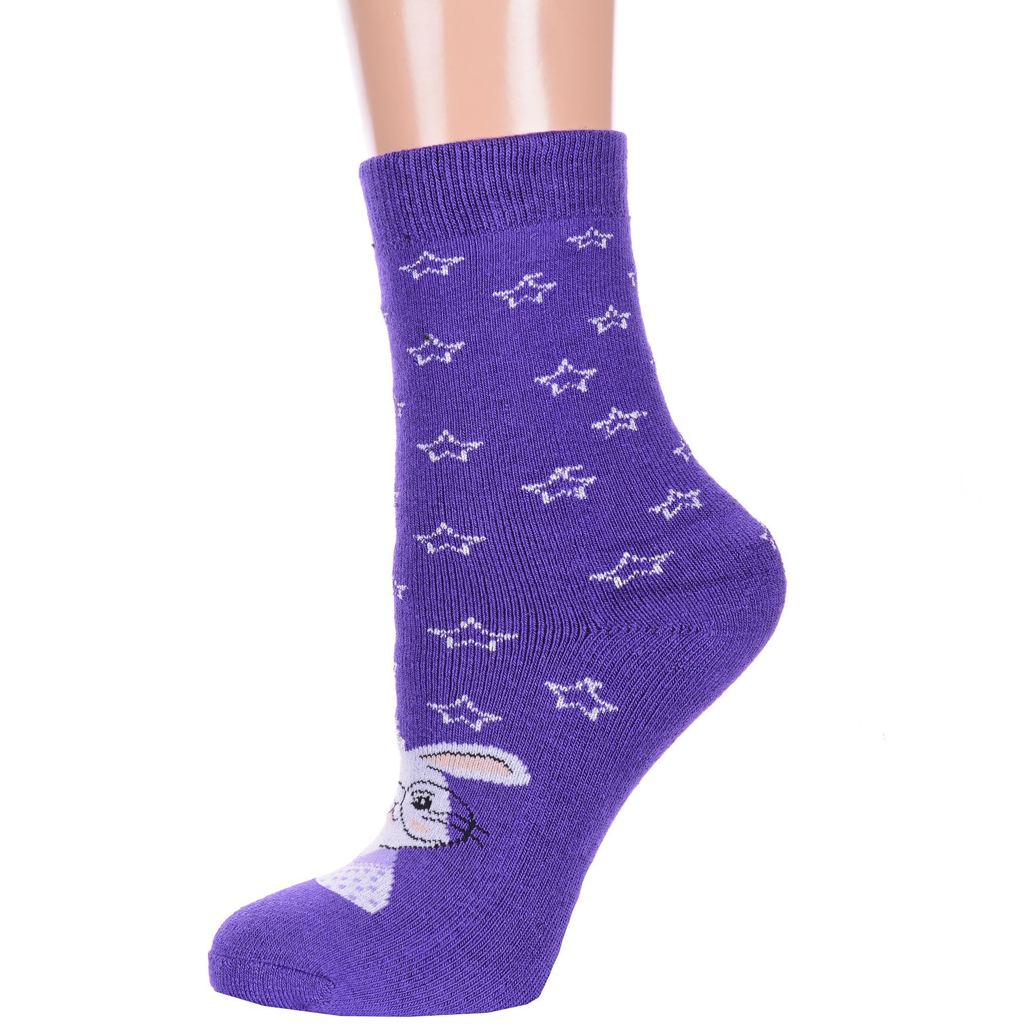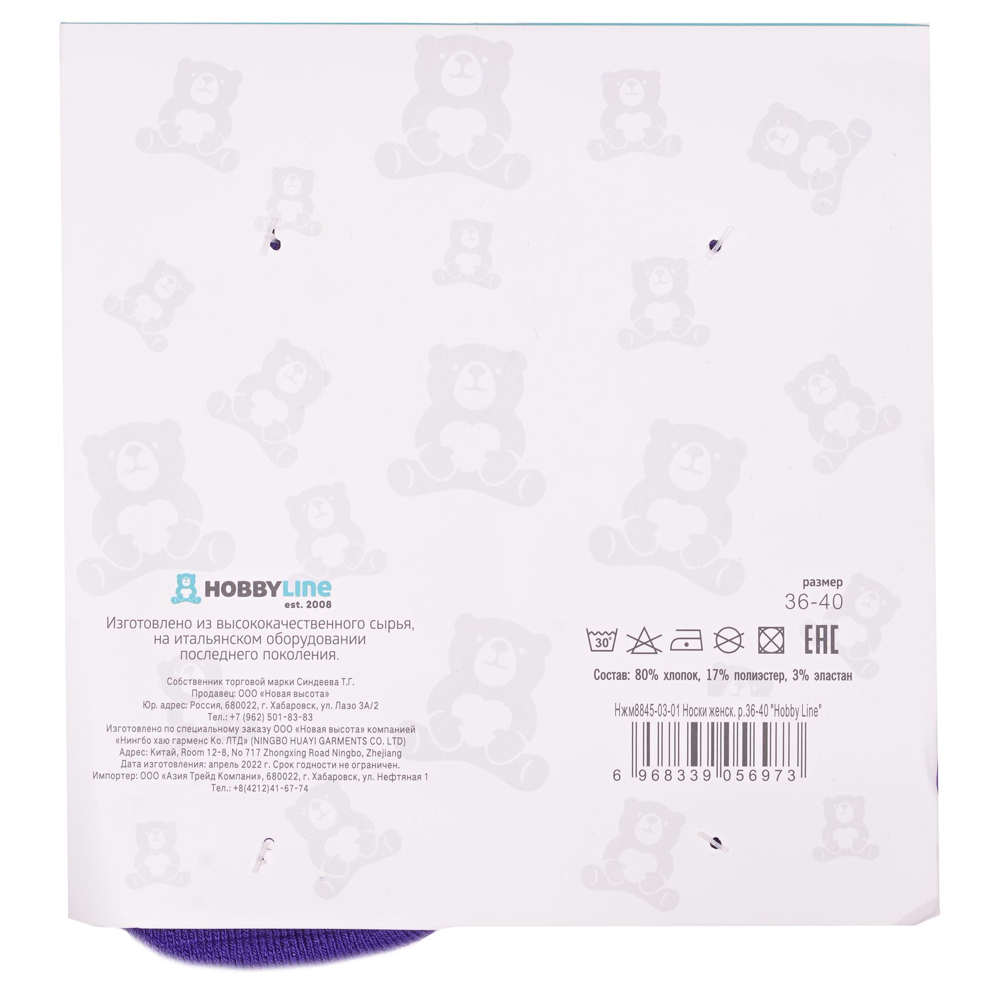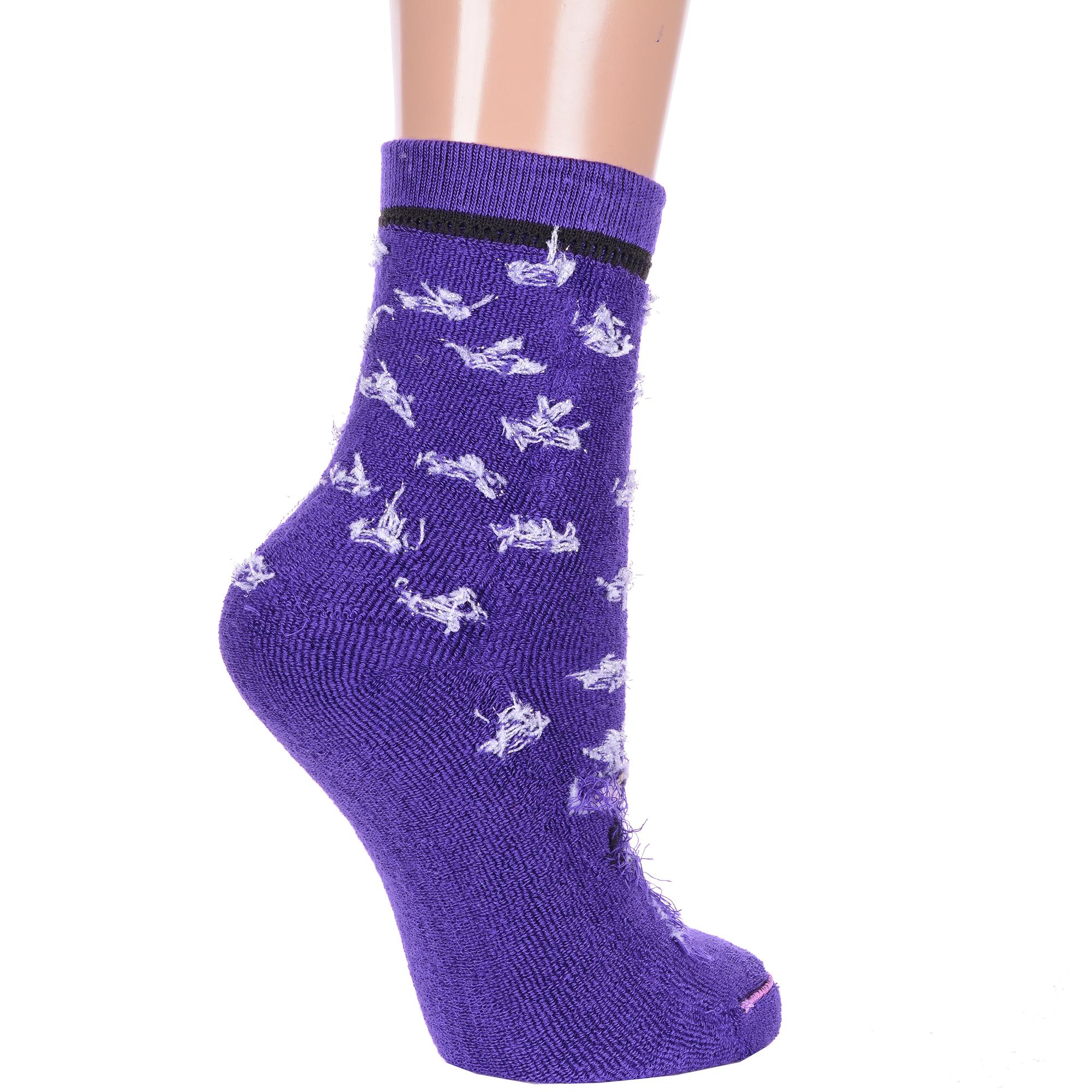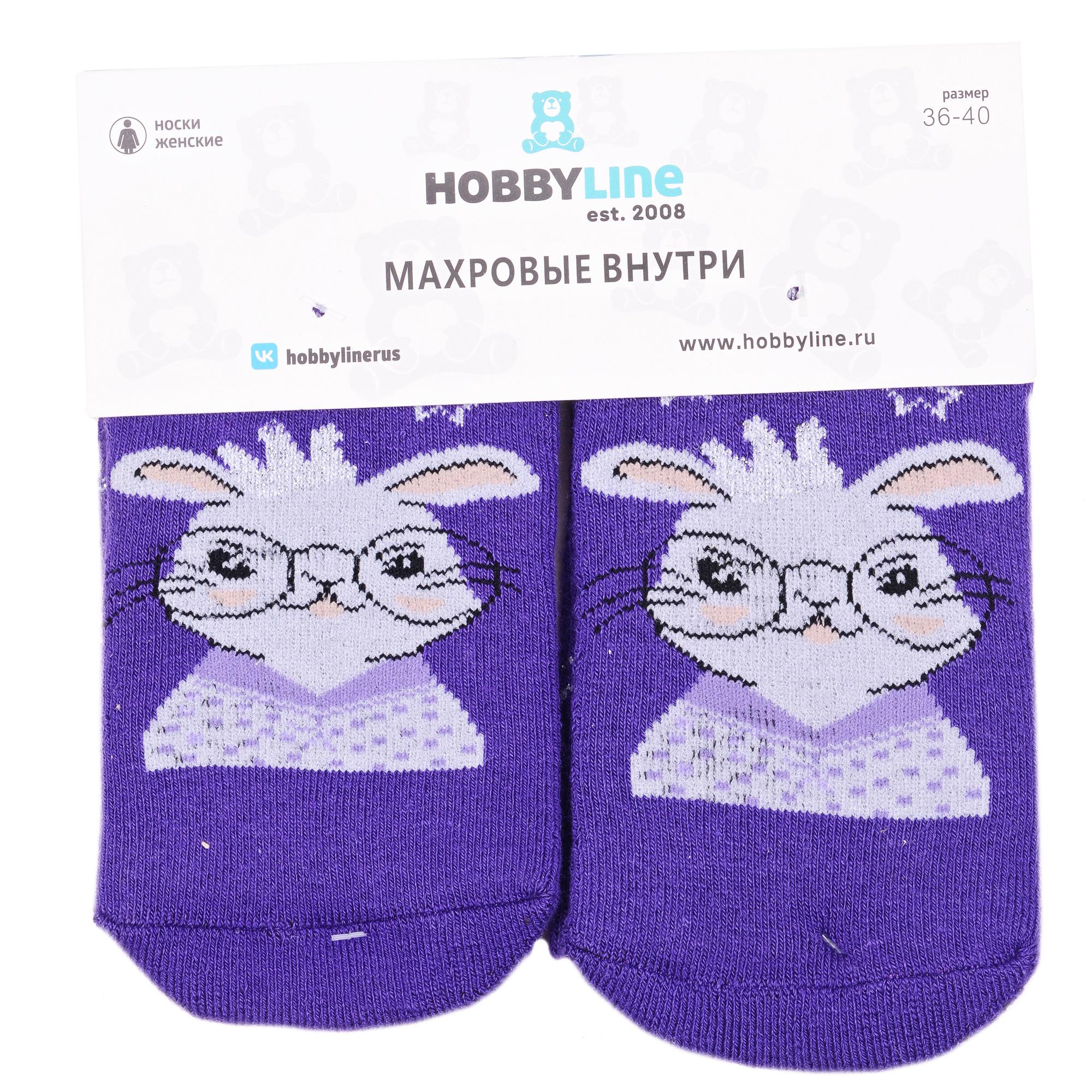 Комплект женских носков из 2 пар, межсезонные или зимние, укороченные, цвет фиолетовый, теплые, повседневные, махровые, возможно бесшовные, принт (рисунок): звезды / небо, животные, блеск люрекса, с узором, состав: 80% хлопок, 17% полиэстер, 3% эластан, арт. 2-Нжм8845-03-01. Производитель «Китай, страна бренда - Россия» под брендом «Hobby line».