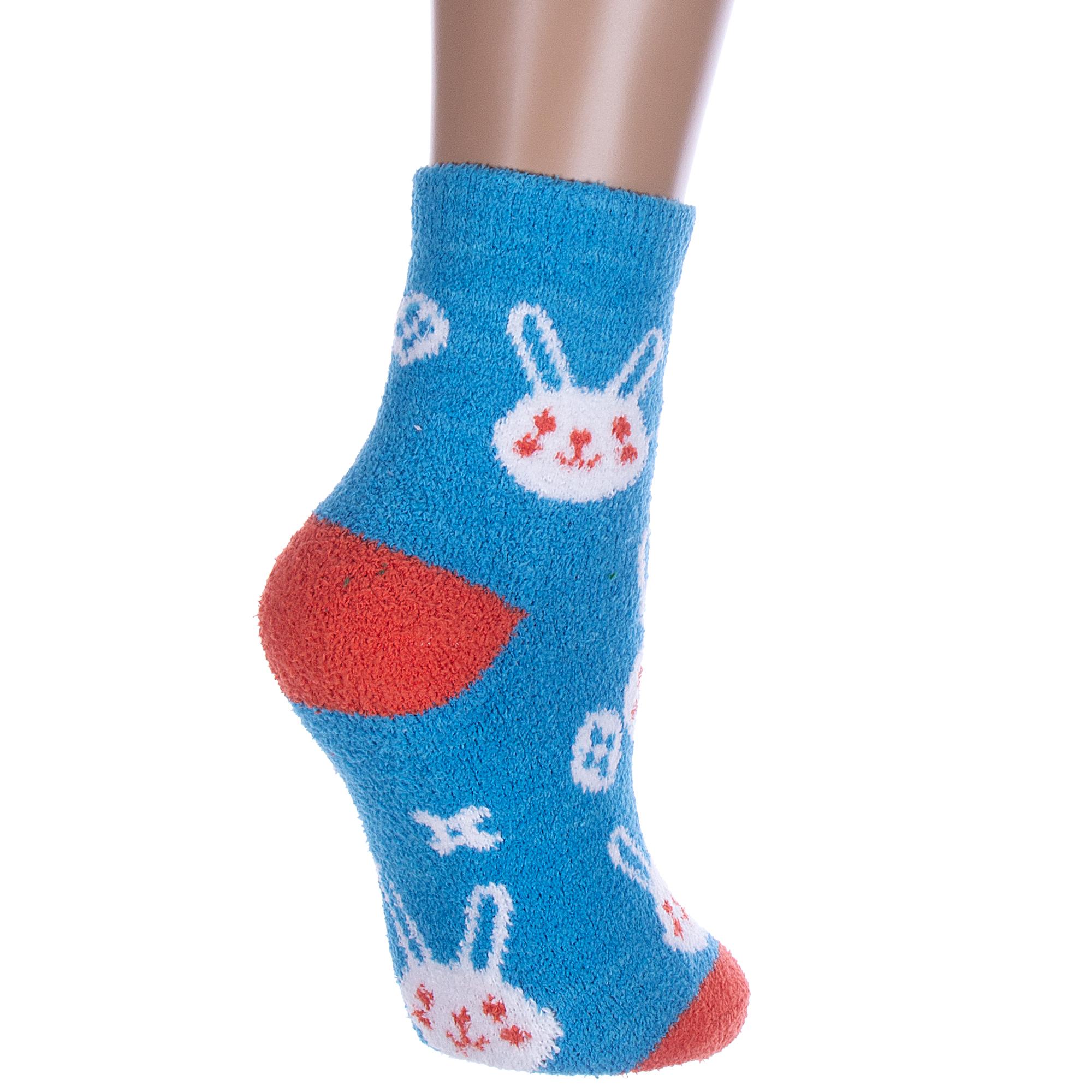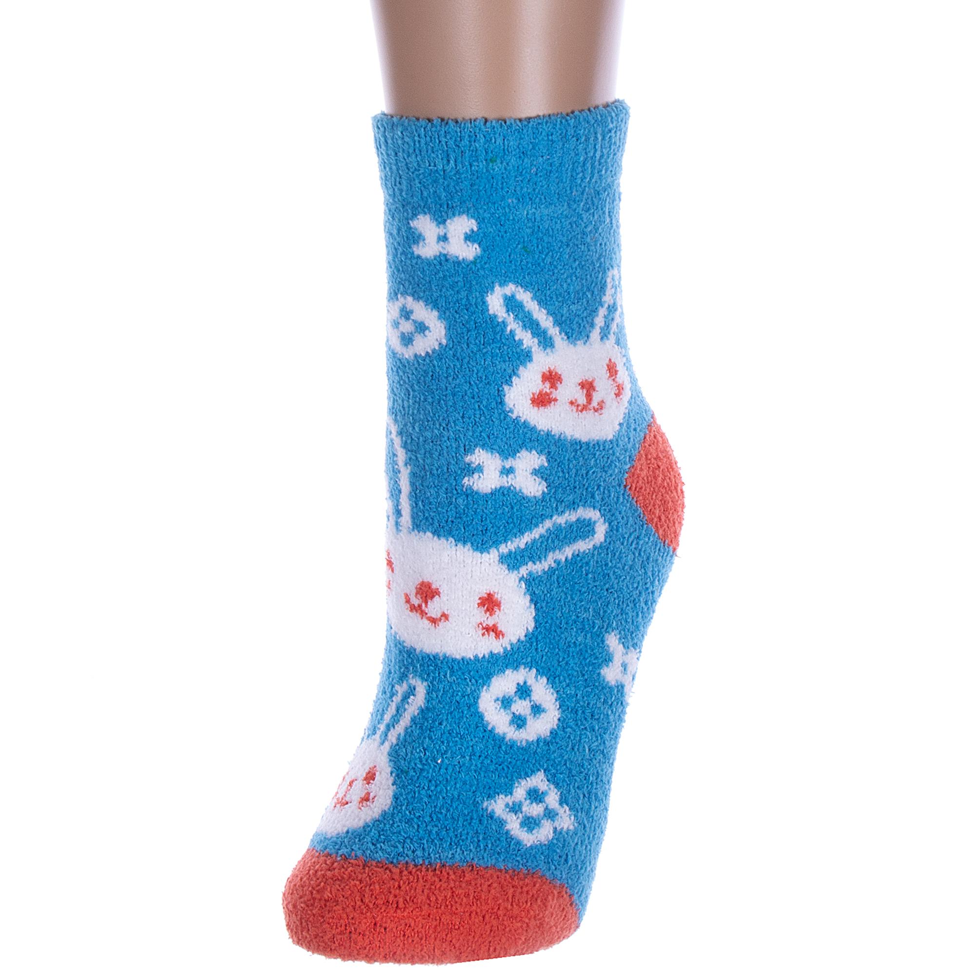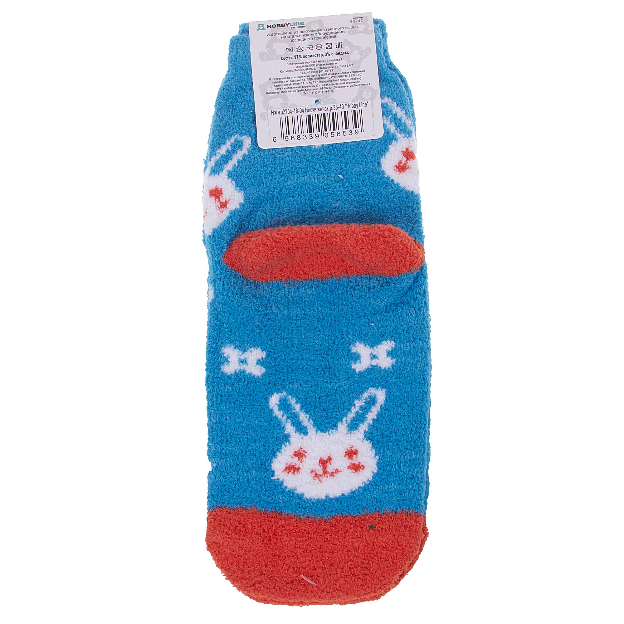 Комплект женских носков из 2 пар, межсезонные или зимние, укороченные, цвет голубой, теплые, повседневные, махровые, шов обычный (не бесшовные), принт (рисунок): контрастные пятка / мысок / резинка, животные, с узором, состав: 97% полиэстер, 3% спандекс, арт. 2-Нжмп2254-18-04. Производитель «Китай, страна бренда - Россия» под брендом «Hobby line».