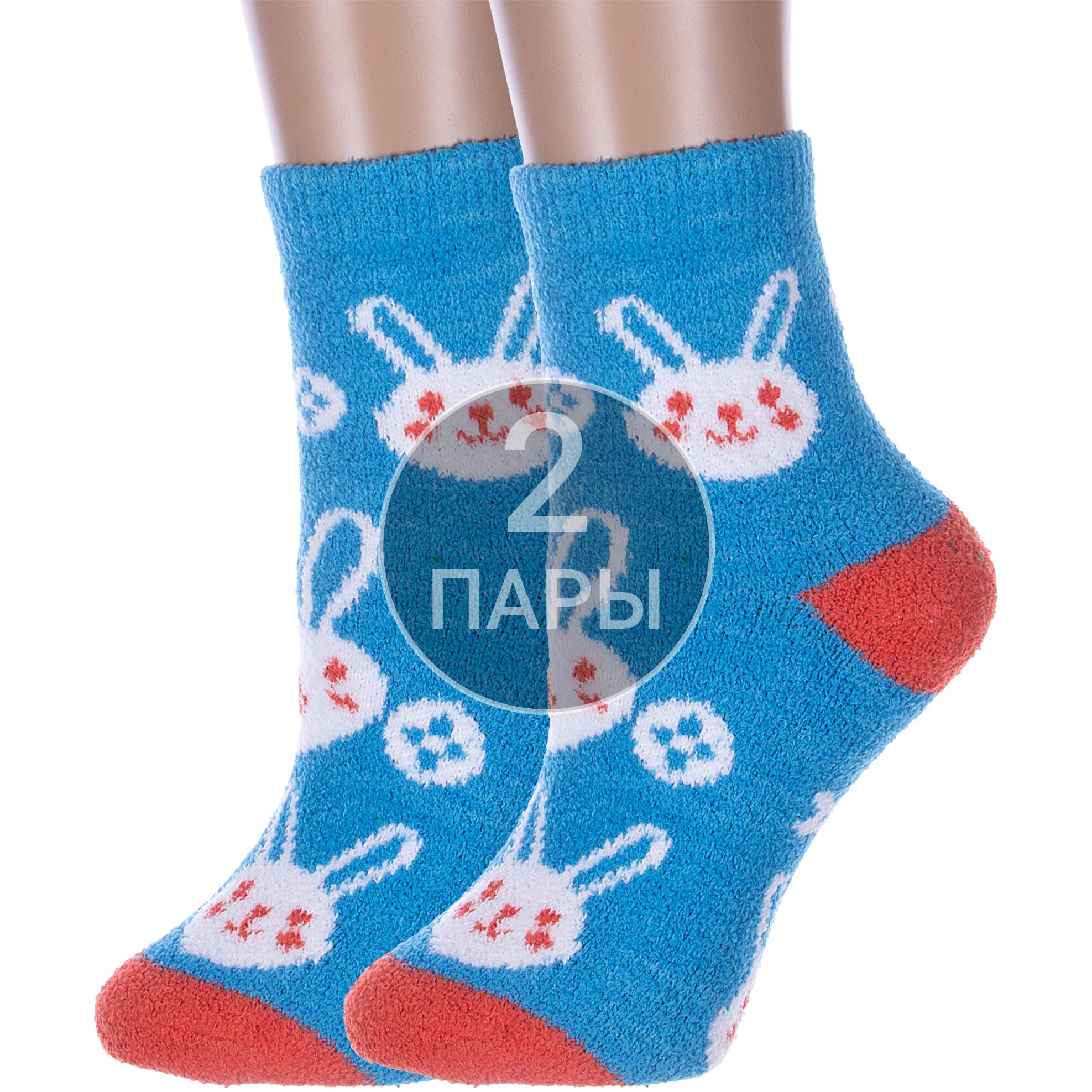 Комплект из 2 пар женских махровых носков Hobby Line 2-Нжмп2254-18-04, ГОЛУБЫЕ