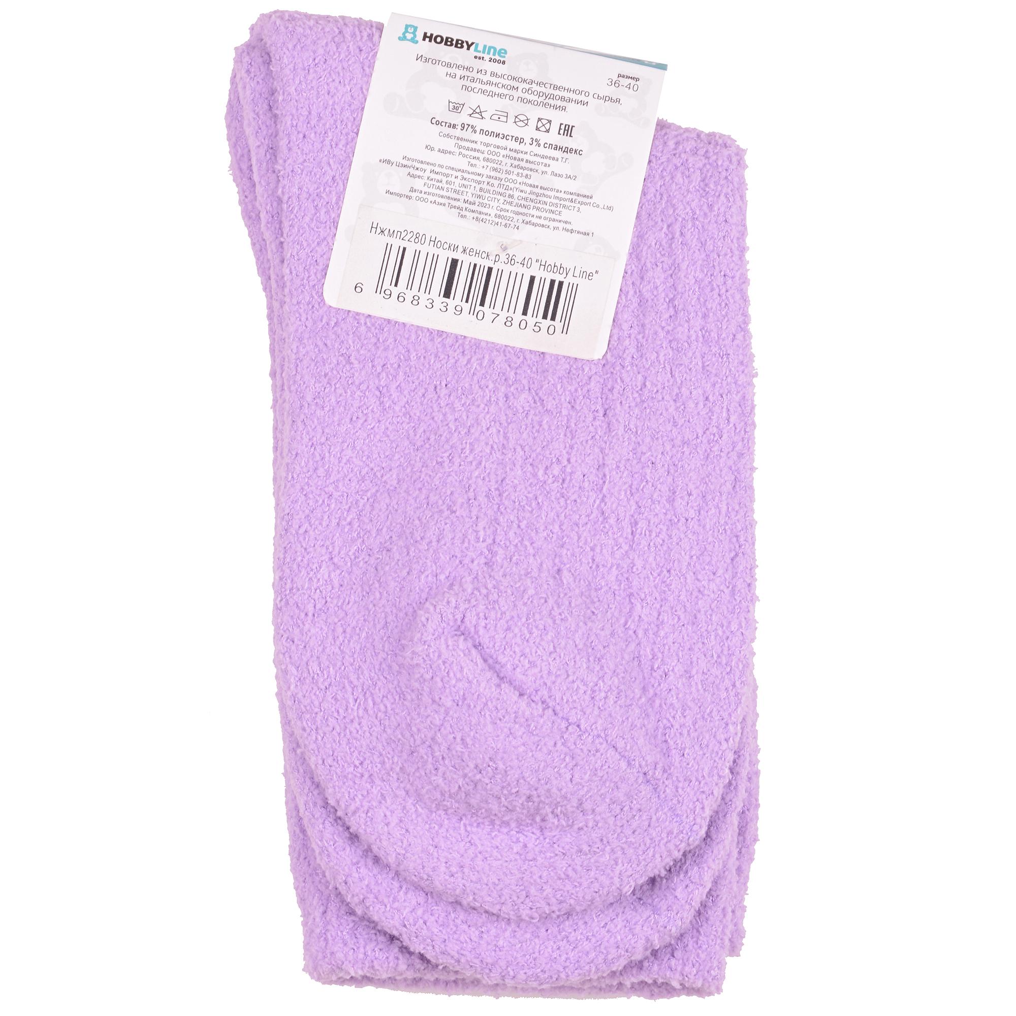 Комплект женских носков из 2 пар, межсезонные или зимние, средней длины, цвет сиреневый, теплые, махровые, классические, шов обычный (не бесшовные), принт (рисунок): в рубчик, однотонный, без рисунков/узоров, состав: 97% полиэстер, 3% спандекс, арт. 2-Нжмп2280. Производитель «Китай, страна бренда - Россия» под брендом «Hobby line».
