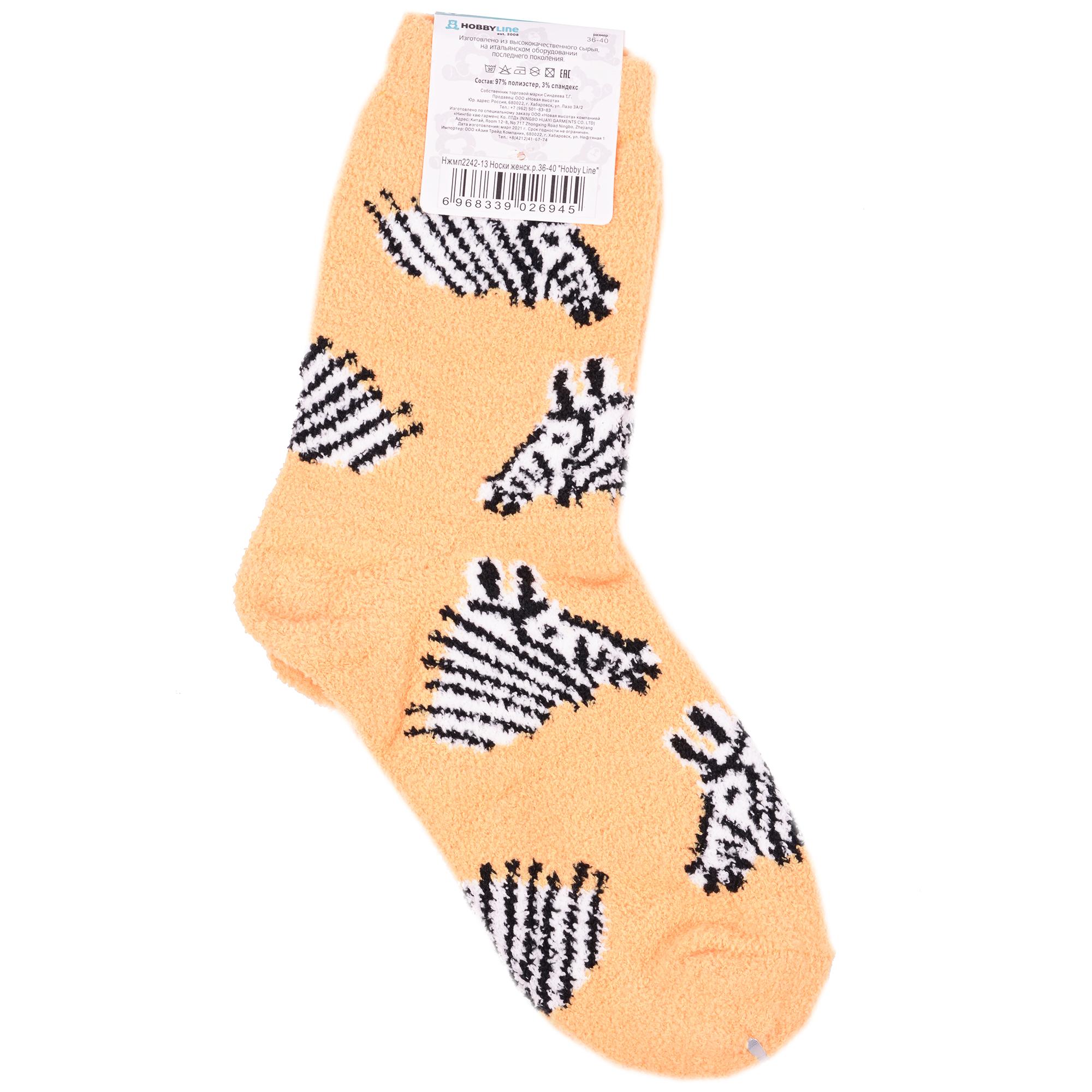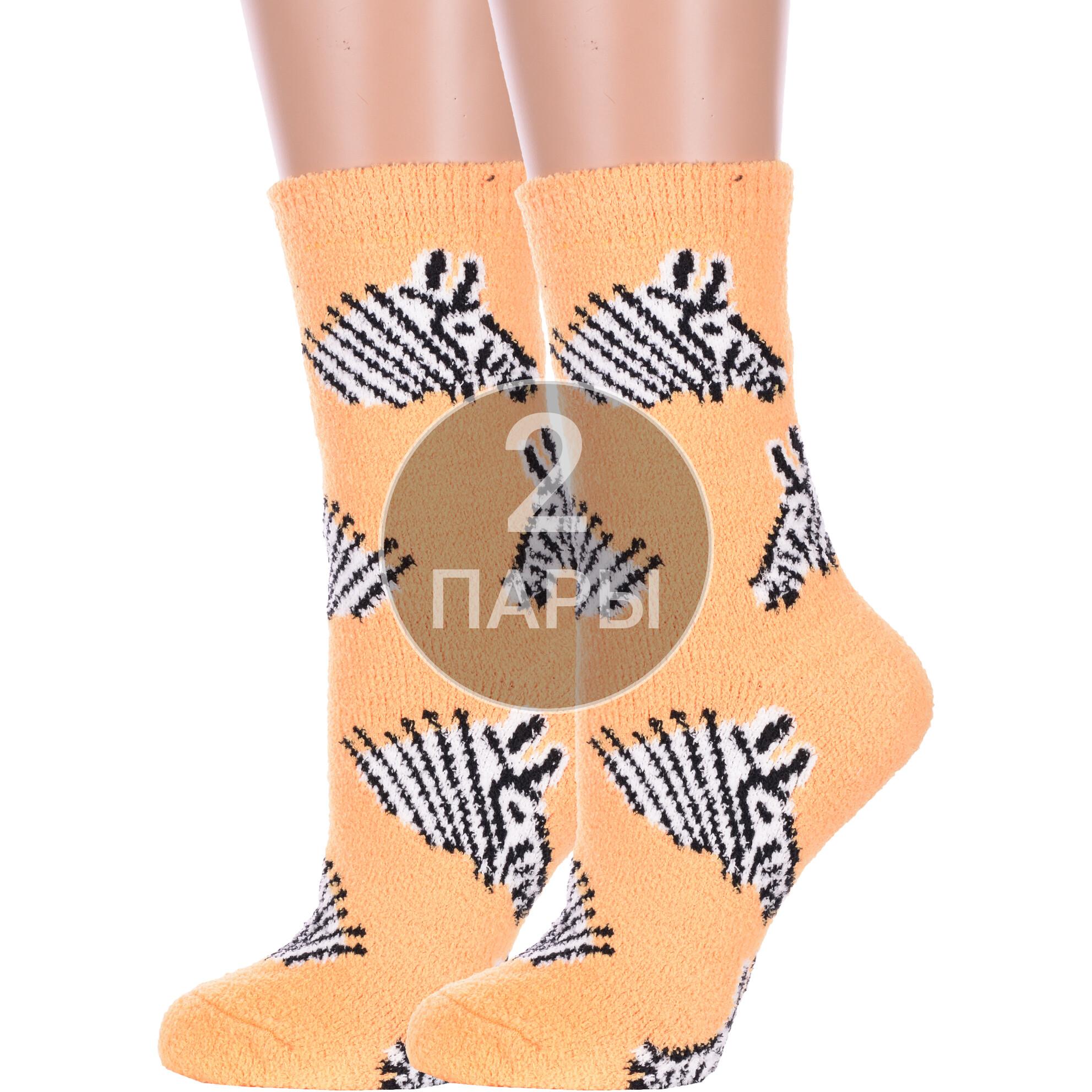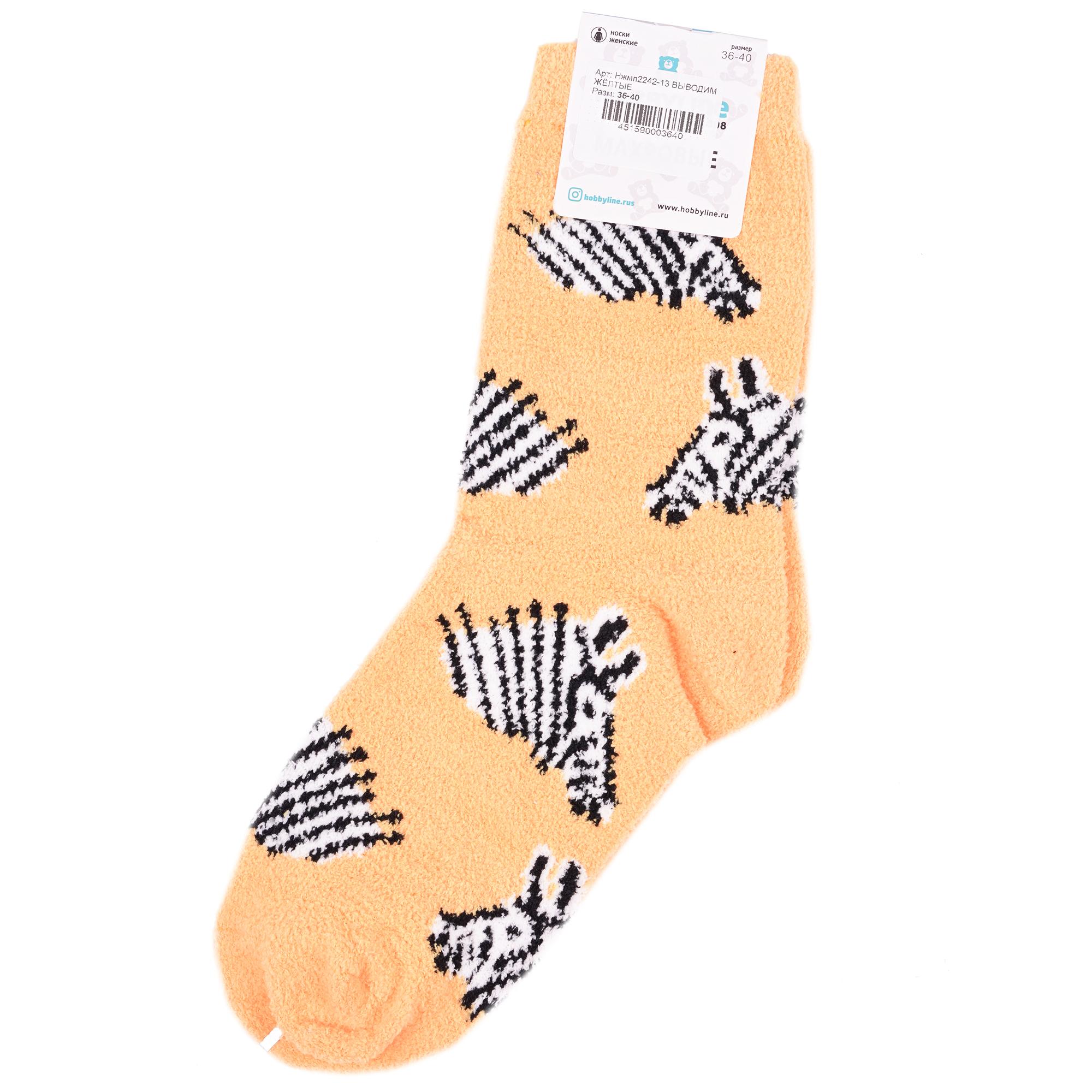 Комплект женских носков из 2 пар, межсезонные или зимние, средней длины, цвет желтый, теплые, повседневные, махровые, шов обычный (не бесшовные), принт (рисунок): животные, с узором, состав: 97% полиэстер, 3% спандекс, арт. 2-Нжмп2242-13. Производитель «Китай, страна бренда - Россия» под брендом «Hobby line».