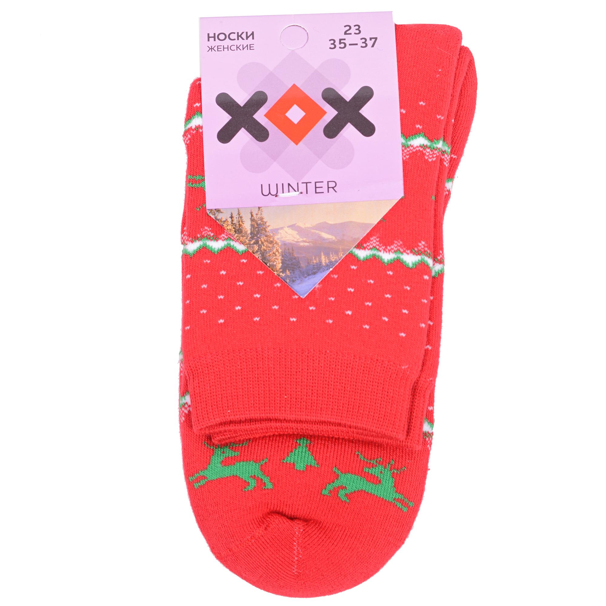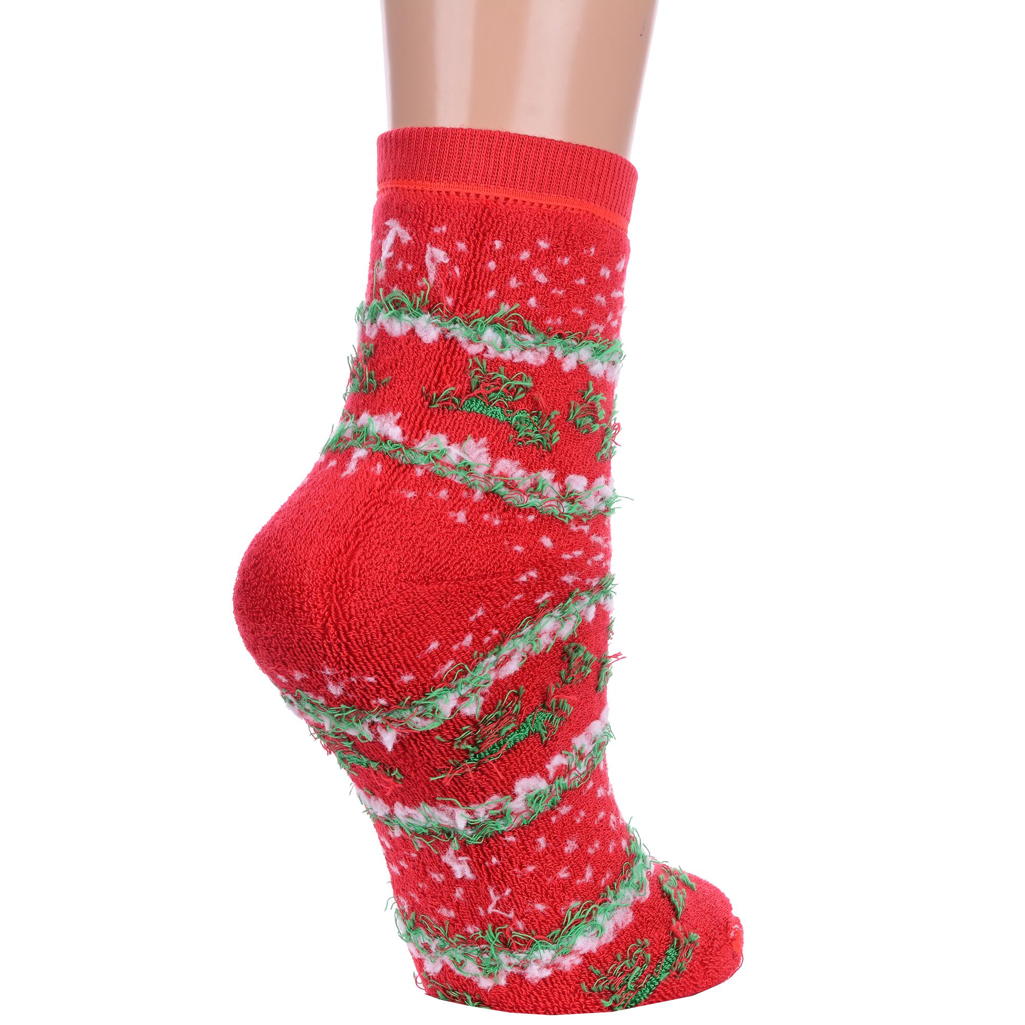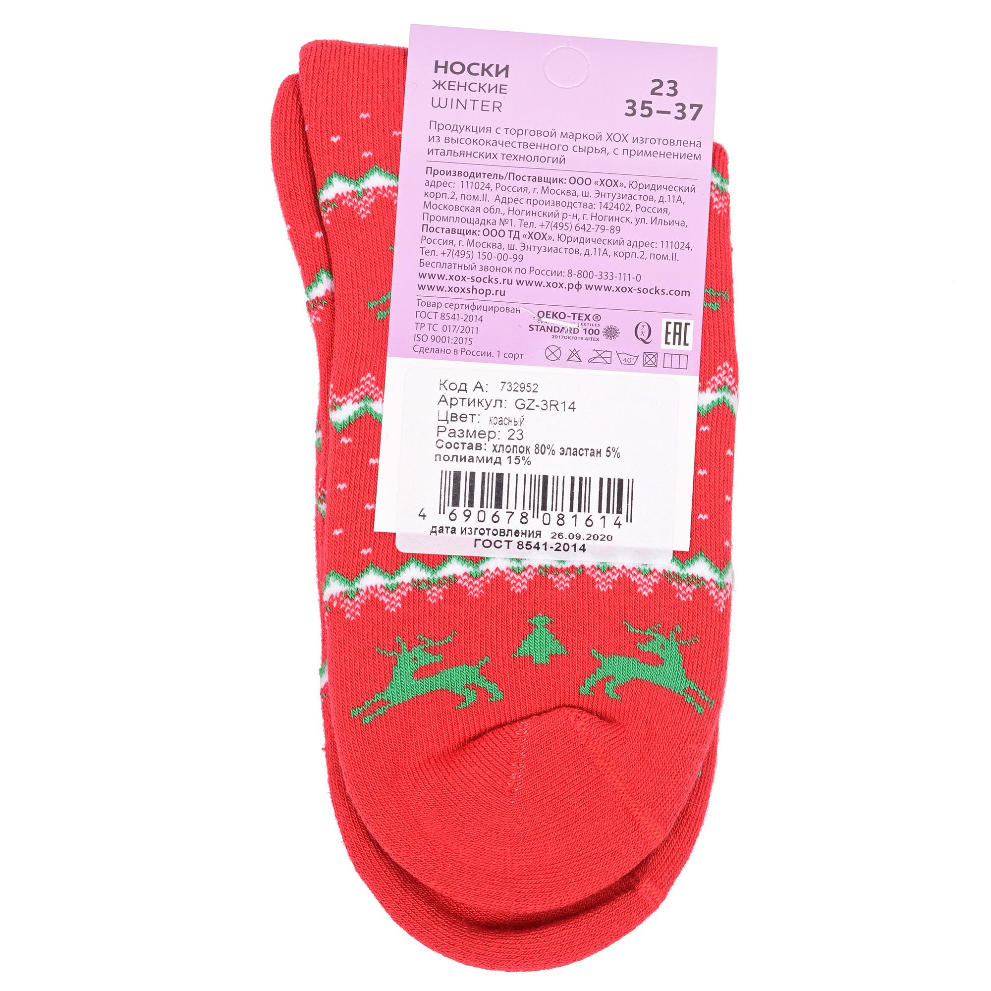 Комплект женских носков из 2 пар, зимние или межсезонные, укороченные, цвет красный, теплые, махровые, повседневные, возможно бесшовные, принт (рисунок): с узором, животные, мелкий принт, новый год, состав: 80% хлопок, 15% полиамид, 5% эластан, арт. 2-GZ-3R14. Производитель «ХОХ» Россия под брендом «Хох».
