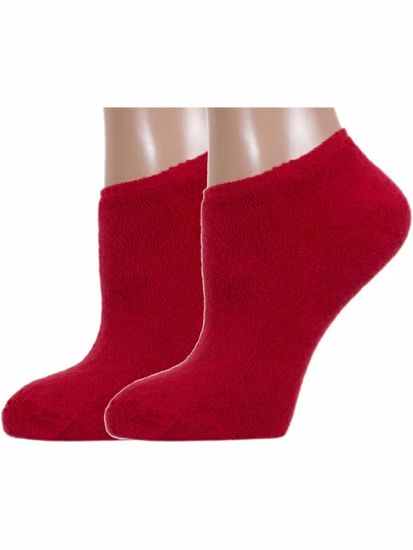 Комплект женских носков из 2 пар, зимние, ультракороткие, цвет красный, теплые, махровые, шов кеттельный (бесшовная технология), принт (рисунок): без рисунков / узоров, однотонный, состав: 88% хлопок, 10% полиамид, 2% эластан, арт. 2-GZ-3R9. Производитель «ХОХ» Россия под брендом «Хох».
