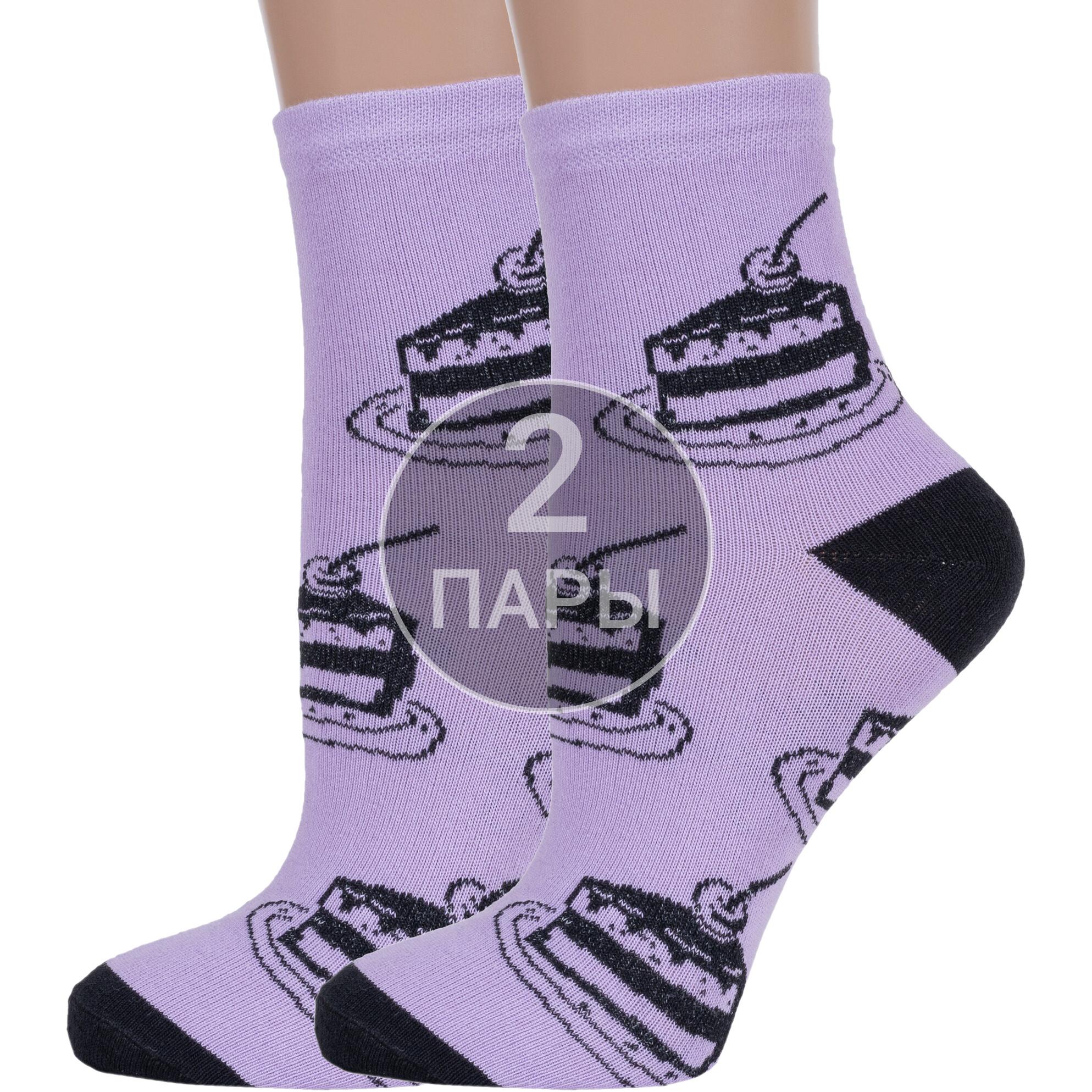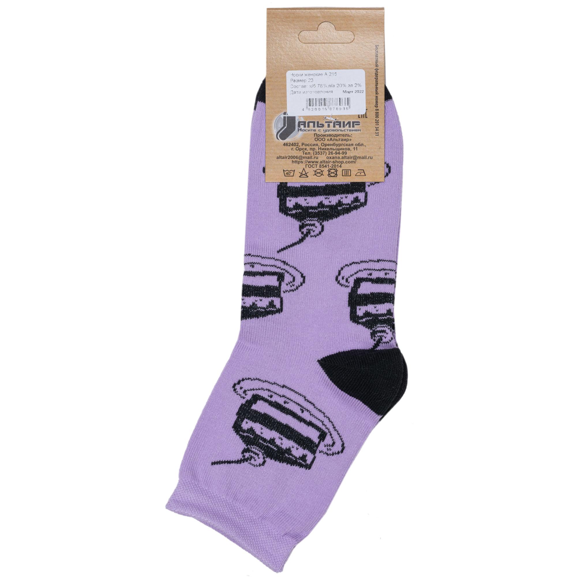 Комплект женских носков из 2 пар, круглогодичные, укороченные, цвет сиреневый, повседневные, шов обычный (не бесшовные), принт (рисунок): вкусности, с узором, состав: 78% хлопок, 20% полиамид, 2% эластан, арт. 2-А215. Производитель «ООО Альтаир, г. Орск, Оренбургская обл, Россия» под брендом «Альтаир».