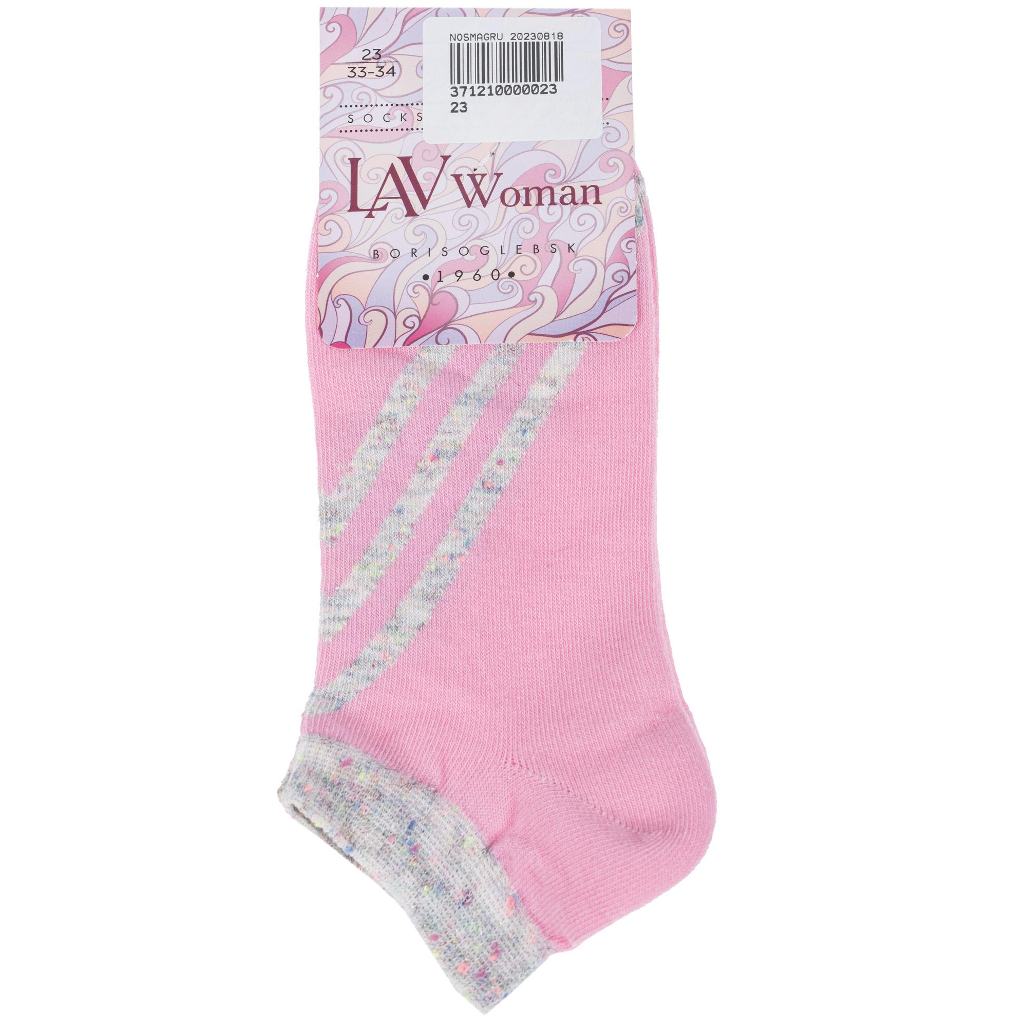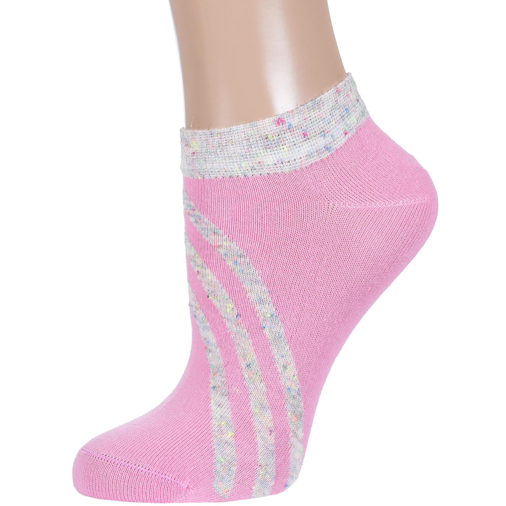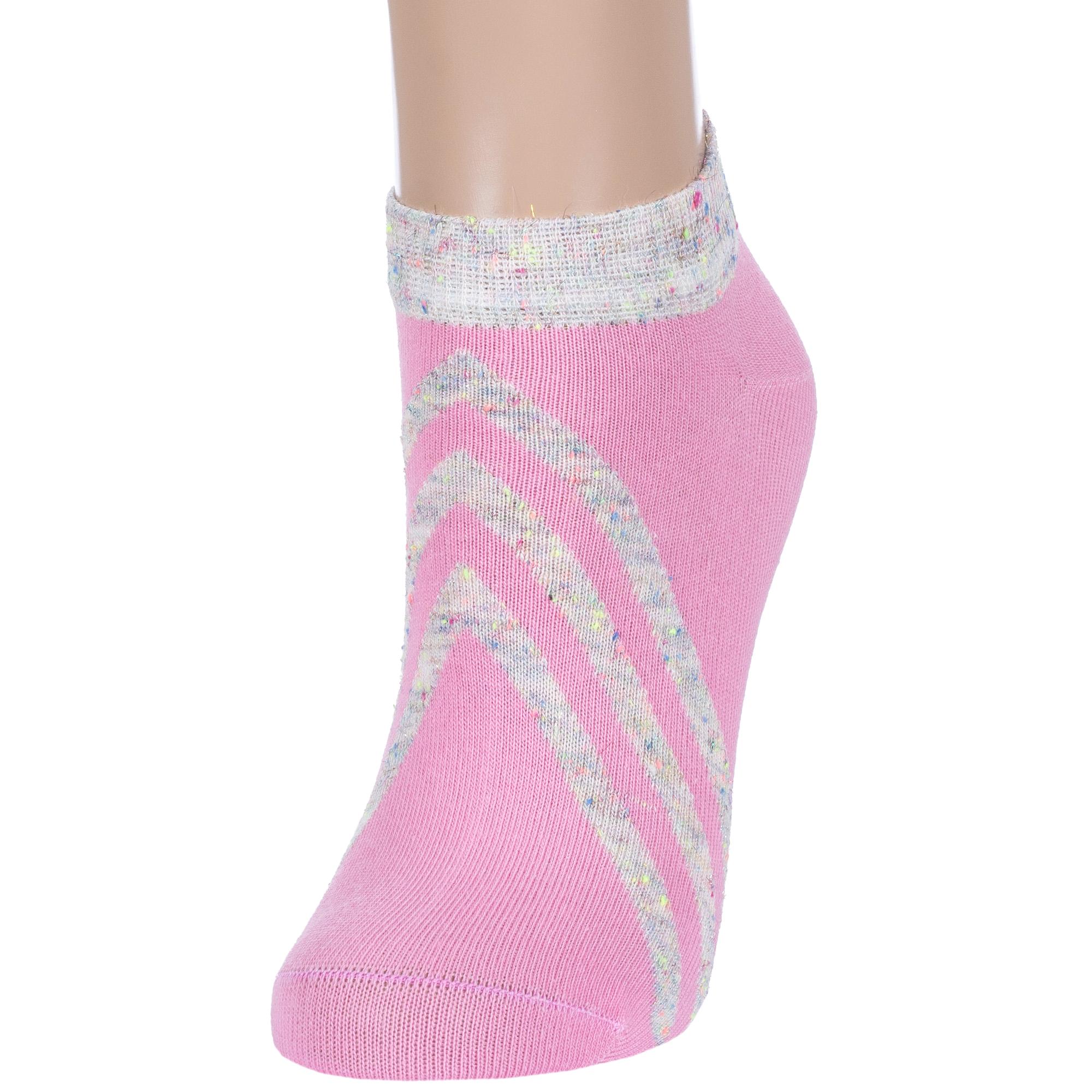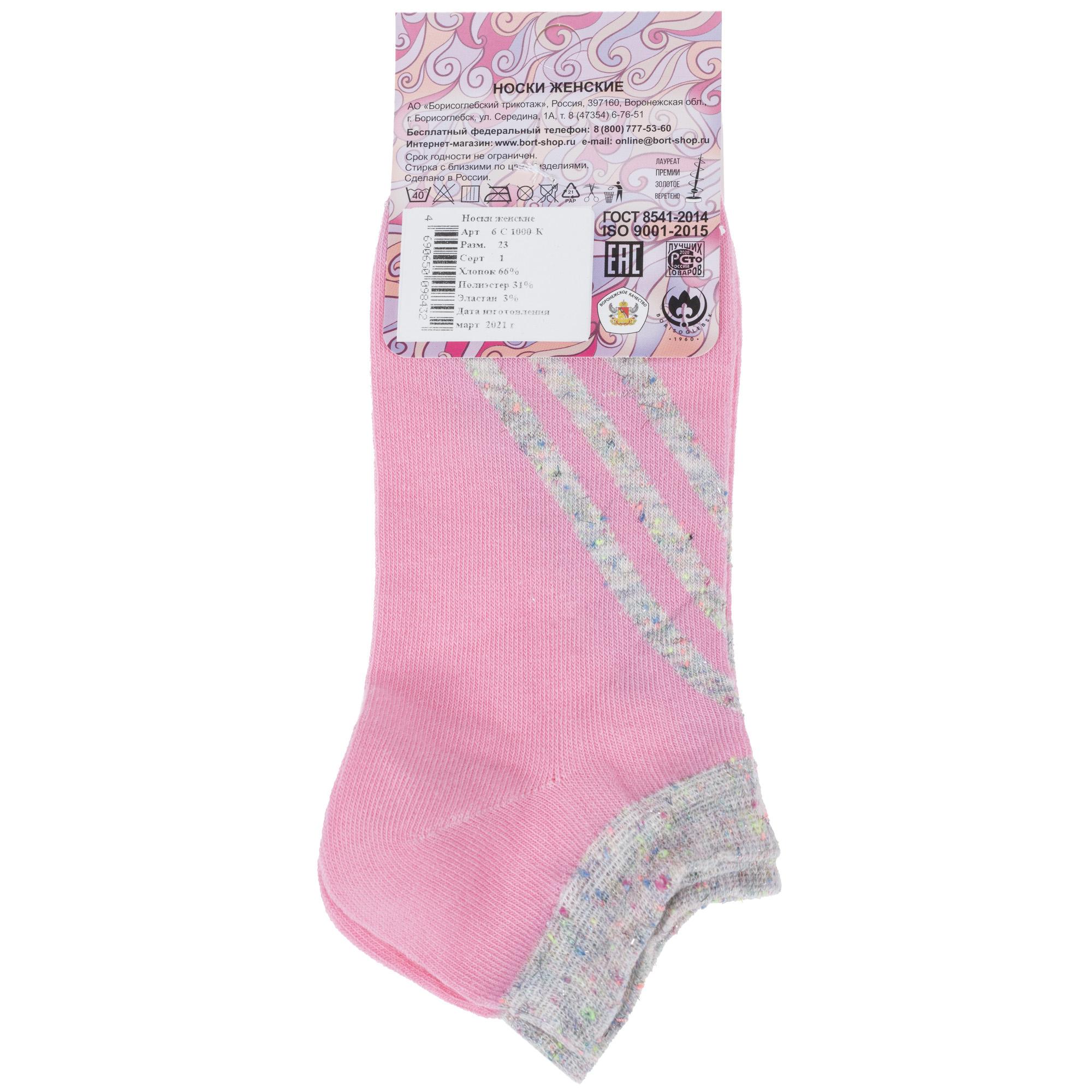 Комплект женских носков из 2 пар, межсезонные или летние, короткие, цвет розовый, классические, шов кеттельный (бесшовная технология), принт (рисунок): контрастные пятка / мысок / резинка, зигзаг / молния, блеск люрекса, с узором, состав: 66% хлопок, 31% полиэстер, 3% эластан, арт. 2-6С1000-К. Производитель «АО Борисоглебский трикотаж, Воронежская обл, Россия» под брендом «Борисоглебский трикотаж».