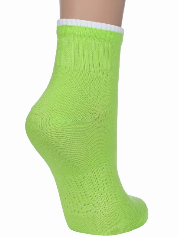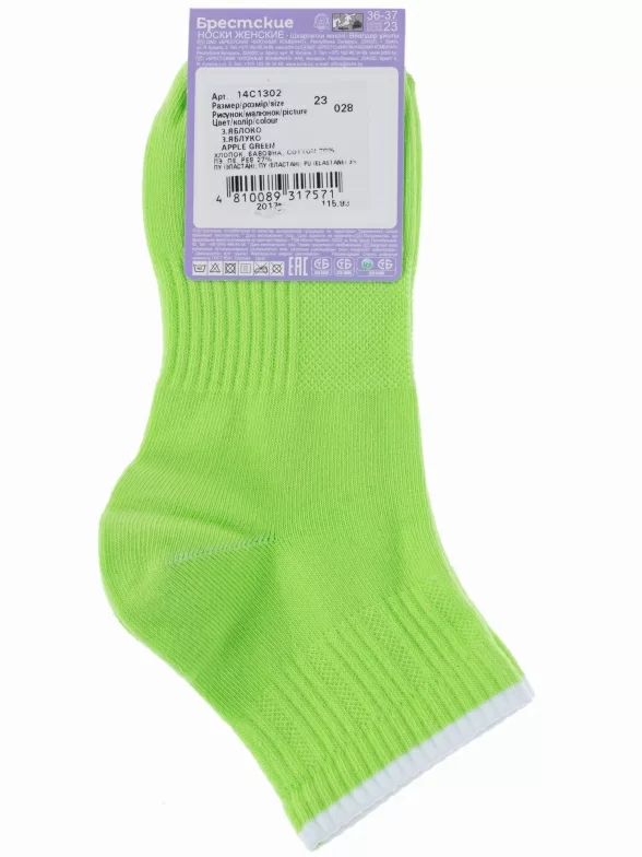 Изготовлены на фабрике в Беларуси в г. Брест из хлопка с добавлением полиэстера и эластана для износостойкости изделия и комфортной посадки. Укороченная модель с двойным бортом (манжетом резинки), неощутимым швом на мыске и вставками из вязки разной плотности.