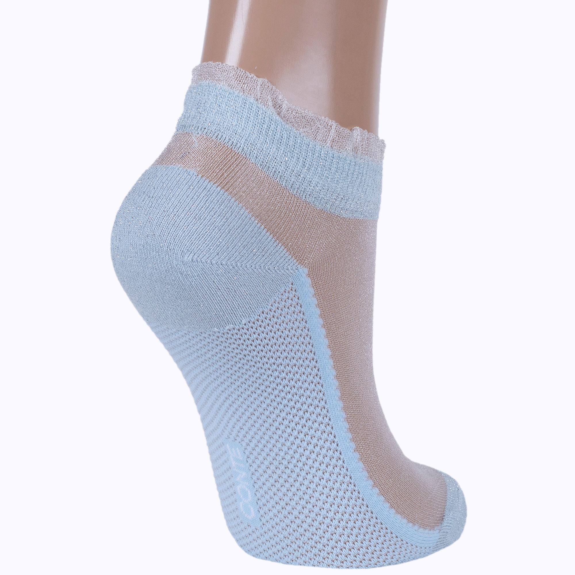 Ультракороткая модель с полупрозрачной вставкой на верхней части стопы, сетчатым следом, двойным бортом (манжетом резинки) с оборкой и неощутимым швом на мыске; украшена люрексовой нитью, которая дает эффект мерцания. Изготовлены на фабрике в Беларуси из хлопка с добавлением полиамида, полиэстера и эластана для износостойкости изделия и комфортной посадки.