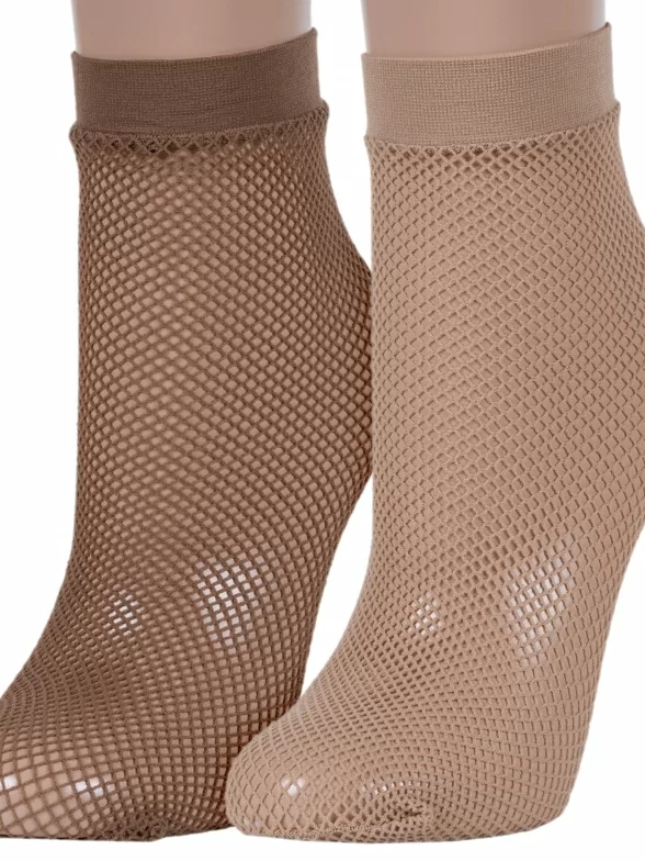 Укороченная модель в сеточку без отдельно вывязанной пятки, с пришивной резинкой и обычным швом на мыске. Изготовлены на фабрике в Беларуси из полиамида с добавлением эластана для комфортной посадки.