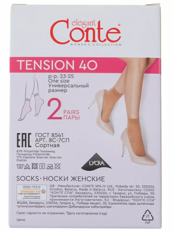 Комплект из 2 пар женских носков Conte, 8С-7СП/Tension 40Н, Natural, телесные