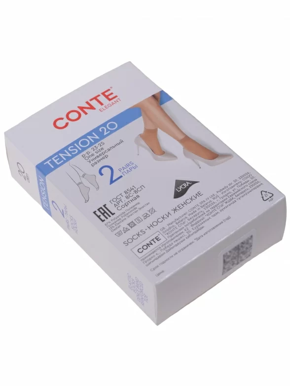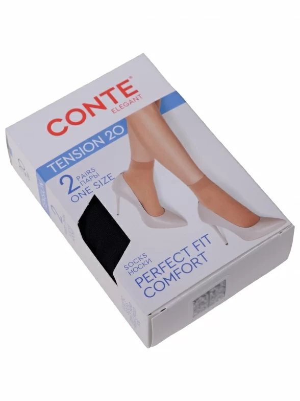 Комплект носков из 2 пар, летние, укороченные, капроновые, шов обычный (не бесшовные), принт (рисунок): без рисунков / узоров, однотонный, состав: 87% полиамид, 13% эластан, арт. Tension 20d. Производитель «Conte, Беларусь» под брендом «Conte».
