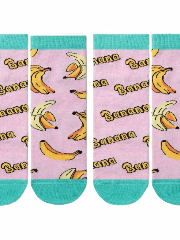 Комплект женских носков с отличающимся на каждой ноге принтом в виде бананов и надписей "Banana".