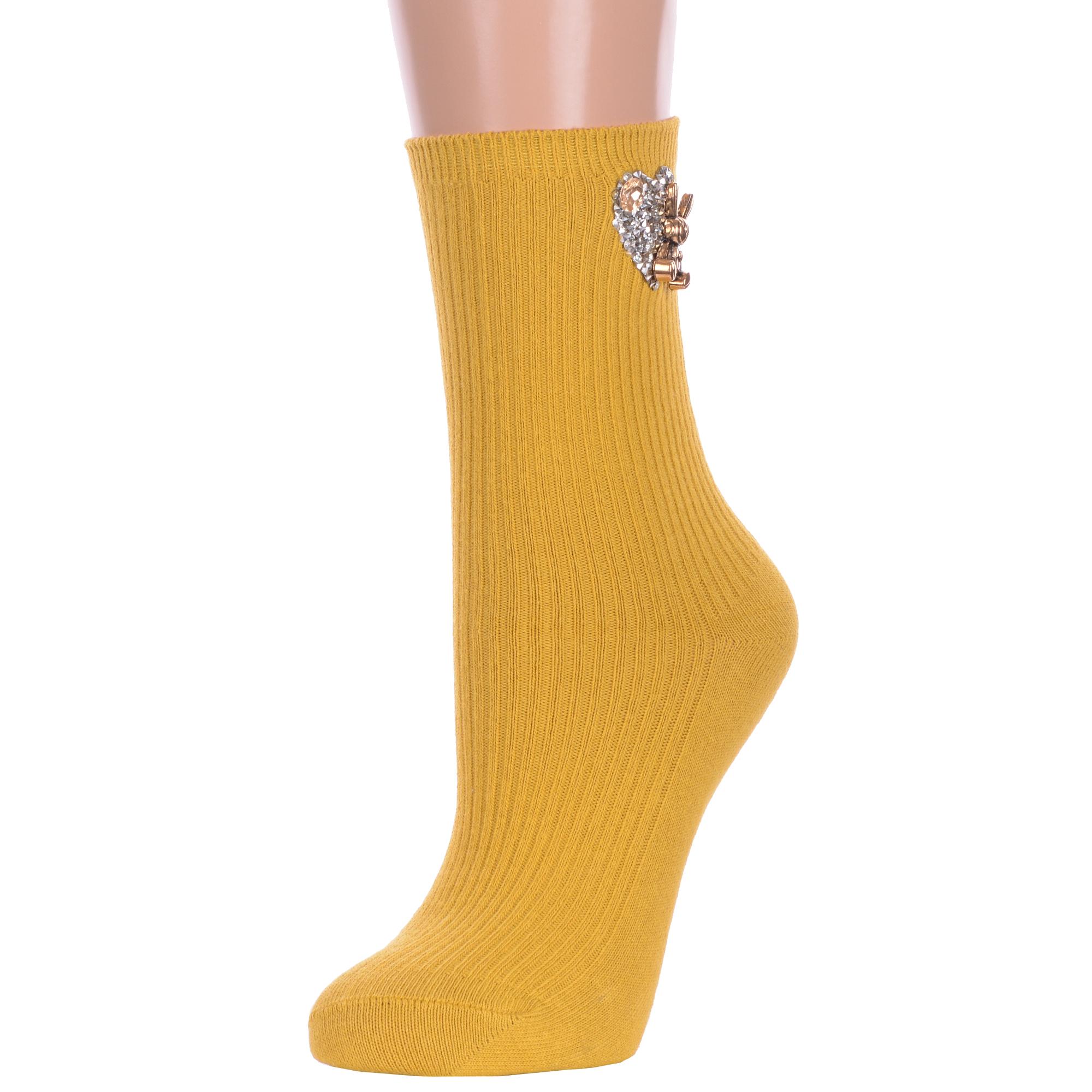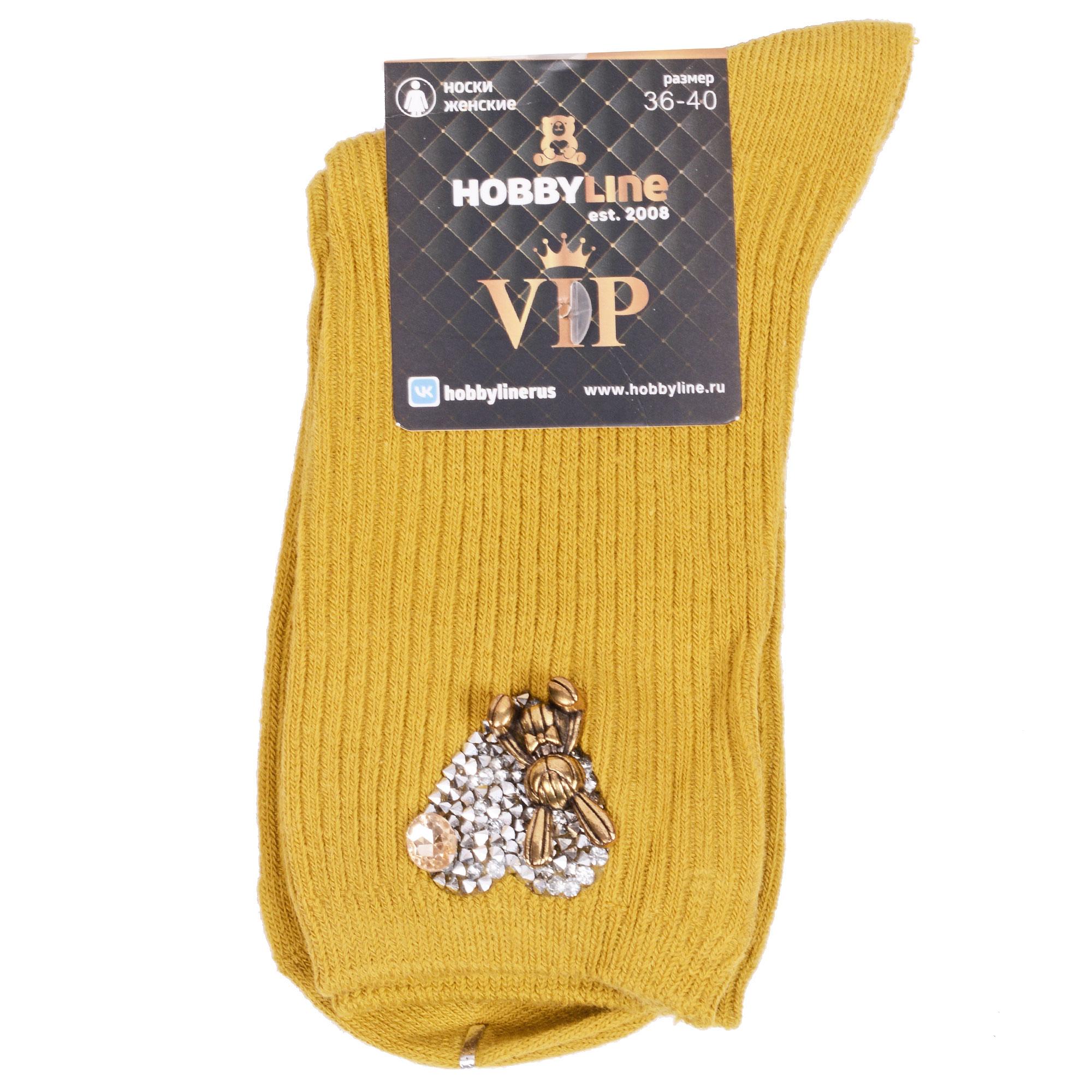 Комплект женских носков из 2 пар, круглогодичные, средней длины, цвет горчичный, необычные, с украшениями, шов обычный (не бесшовные), принт (рисунок): животные, сердечки / поцелуи / любовь, с узором, в рубчик, состав: 75% хлопок, 23% полиамид, 2% эластан, арт. 2-Нжвип1000-03. Производитель «Китай, страна бренда - Россия» под брендом «Hobby line».