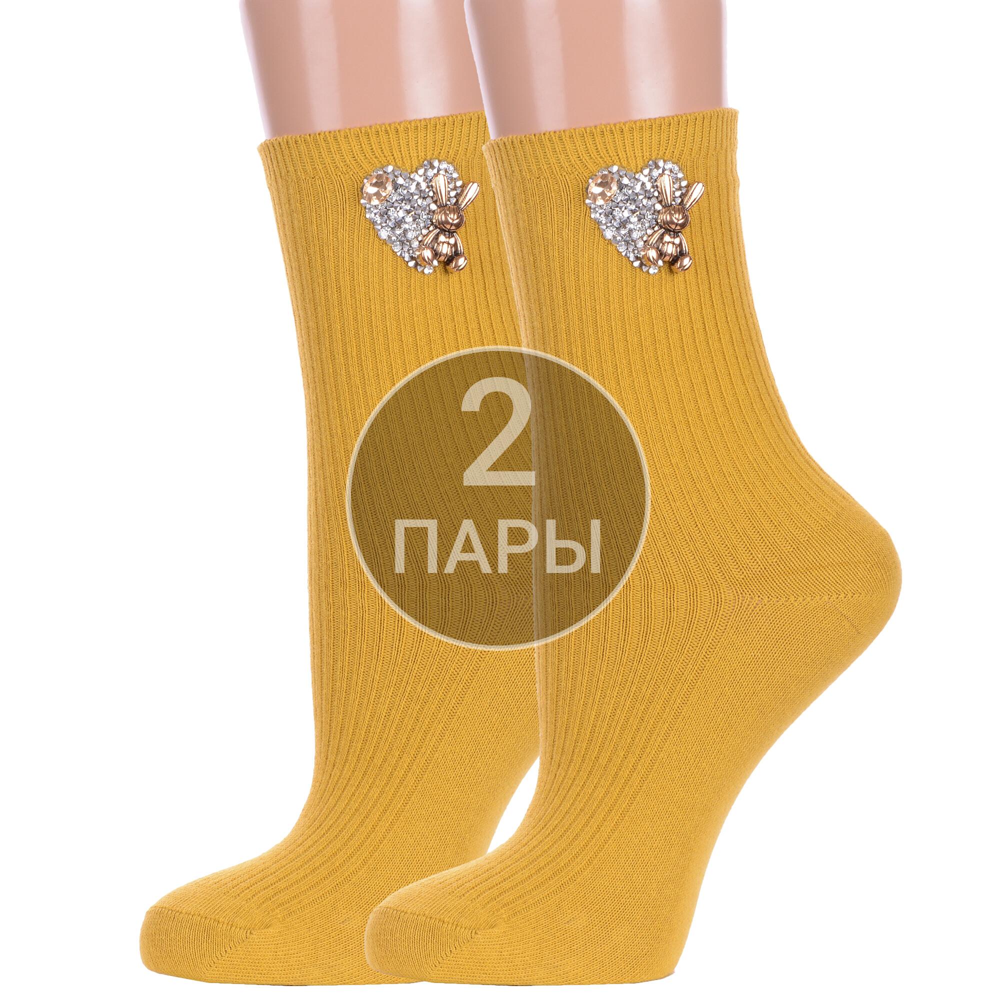 Комплект из 2 пар женских носков Hobby Line 2-Нжвип1000-03, ГОРЧИЧНЫЕ