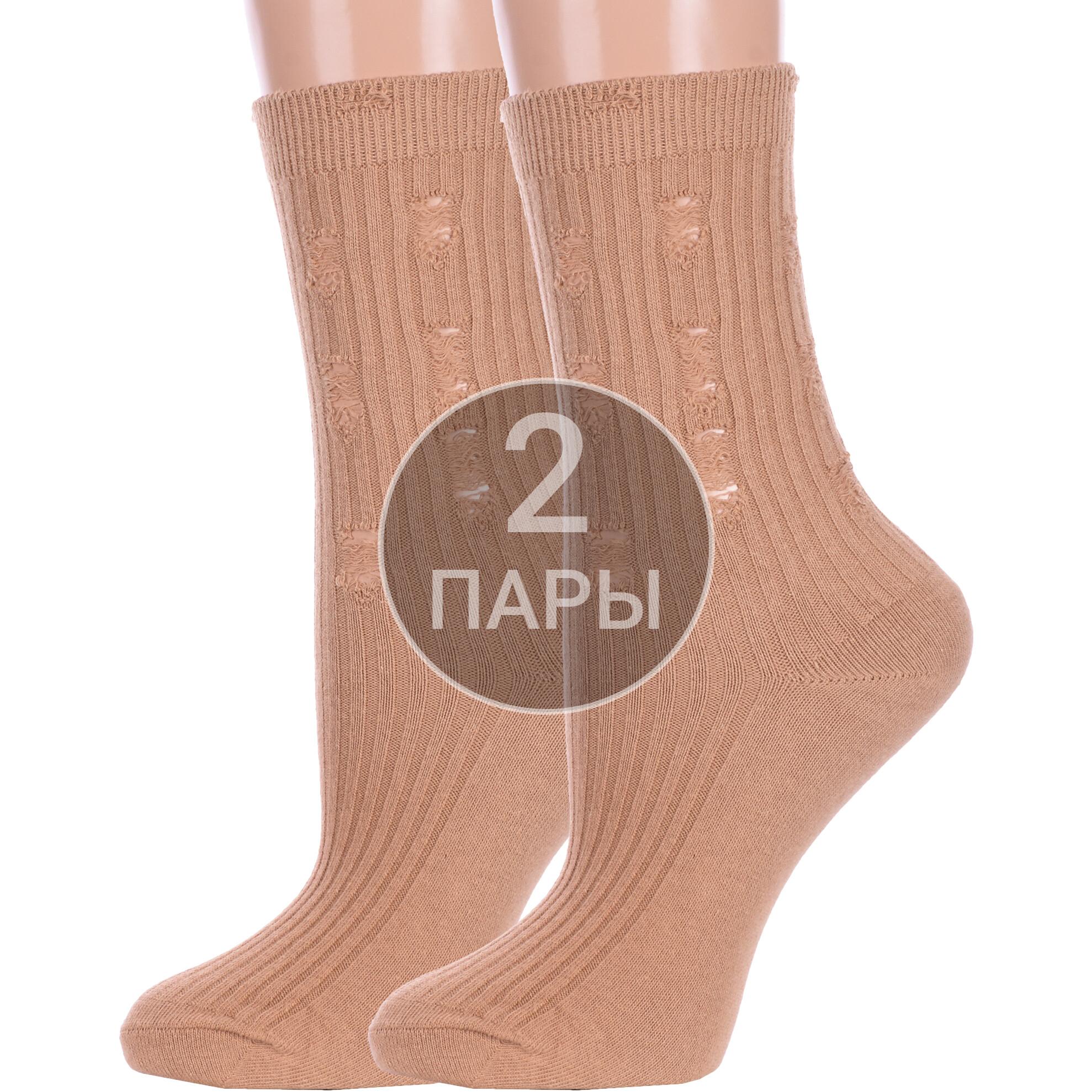 Комплект женских носков из 2 пар, круглогодичные, средней длины, цвет песочный, необычные, шов обычный (не бесшовные), принт (рисунок): без рисунков/узоров, однотонный, в рубчик, состав: 75% хлопок, 23% полиамид, 2% эластан, арт. 2-Нжвип1024. Производитель «Китай, страна бренда - Россия» под брендом «Hobby line».