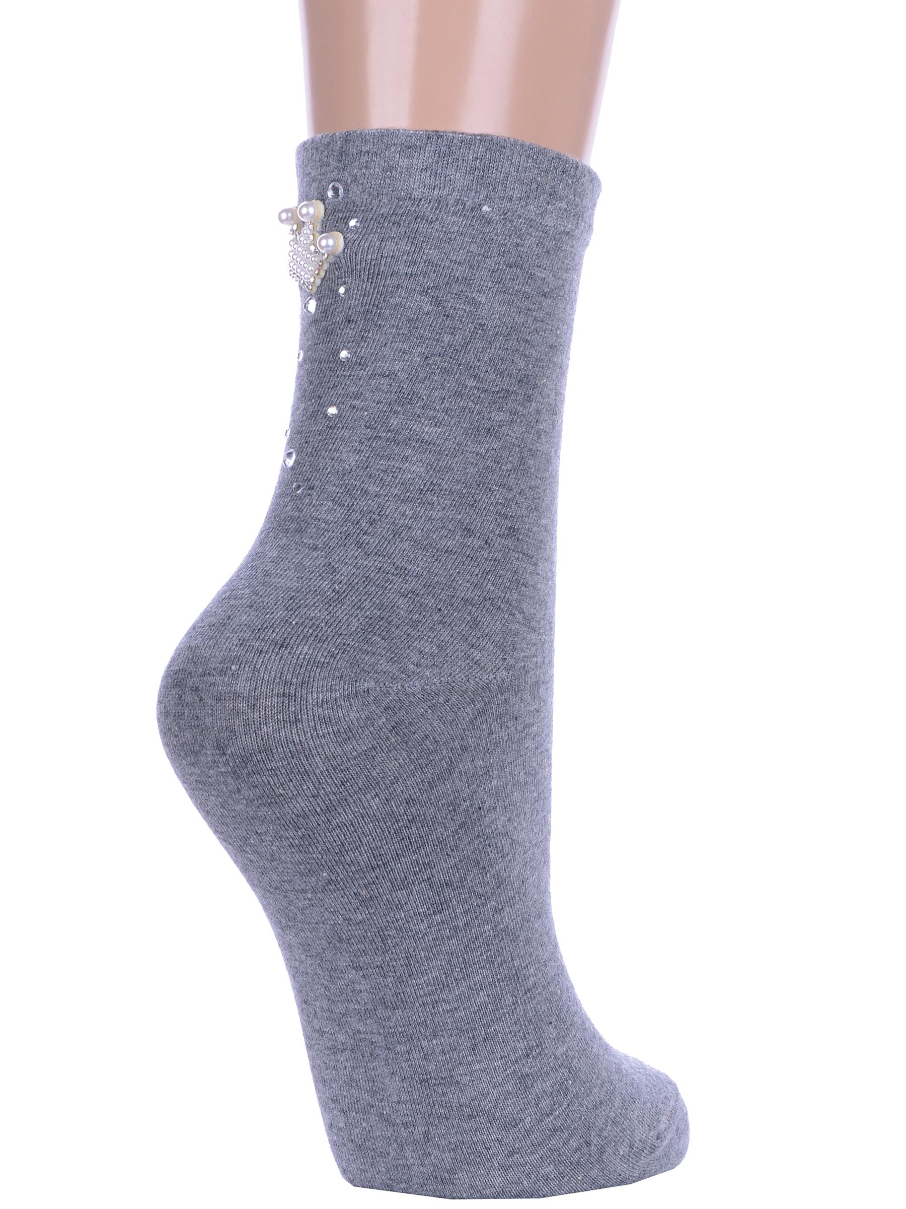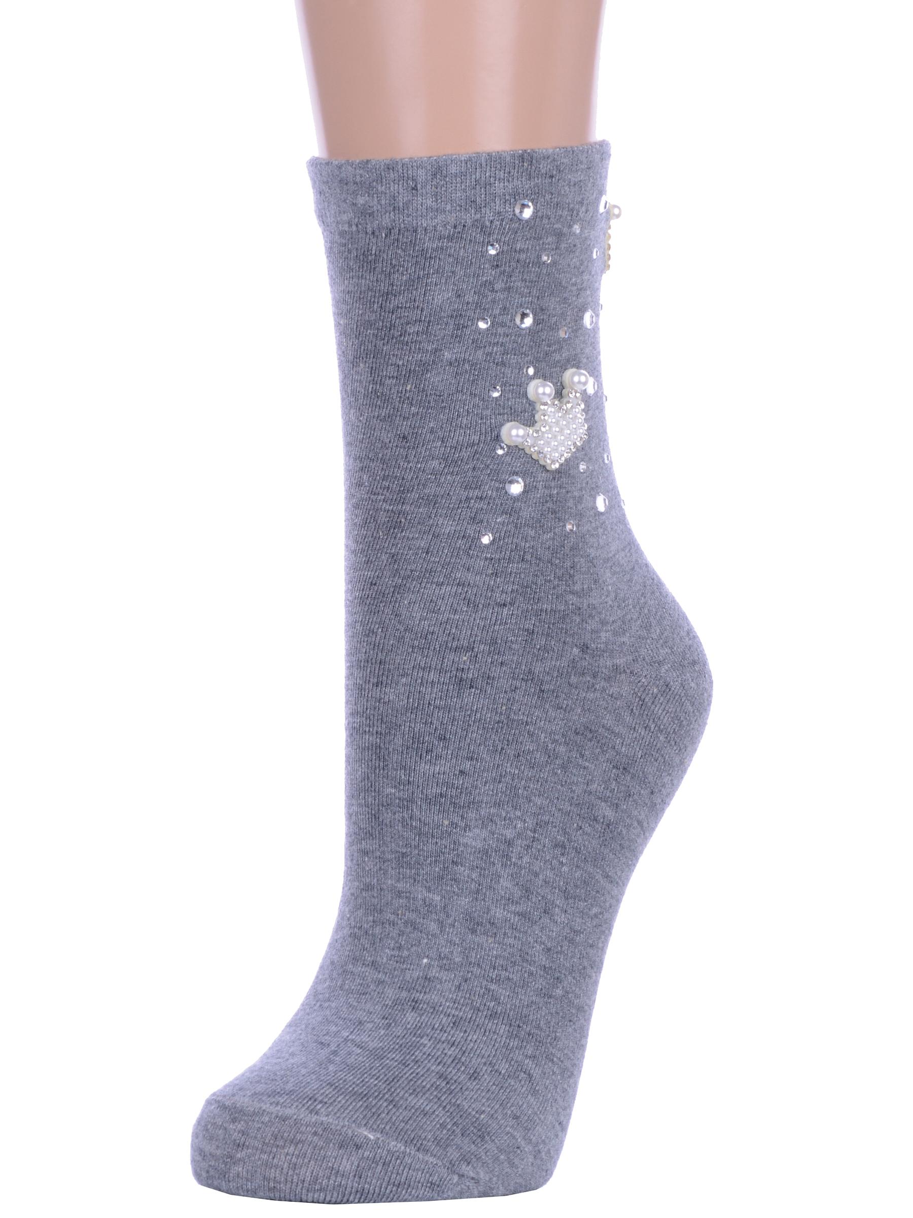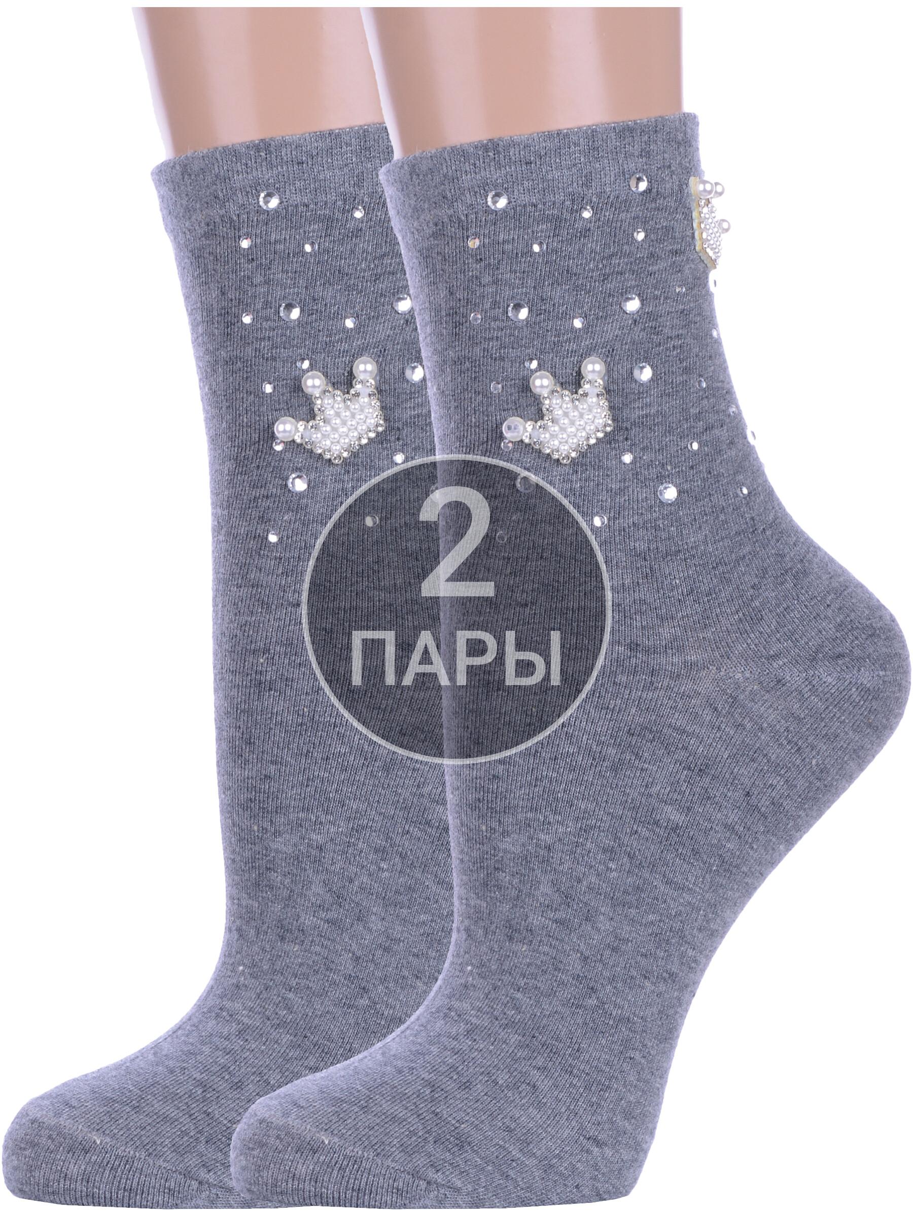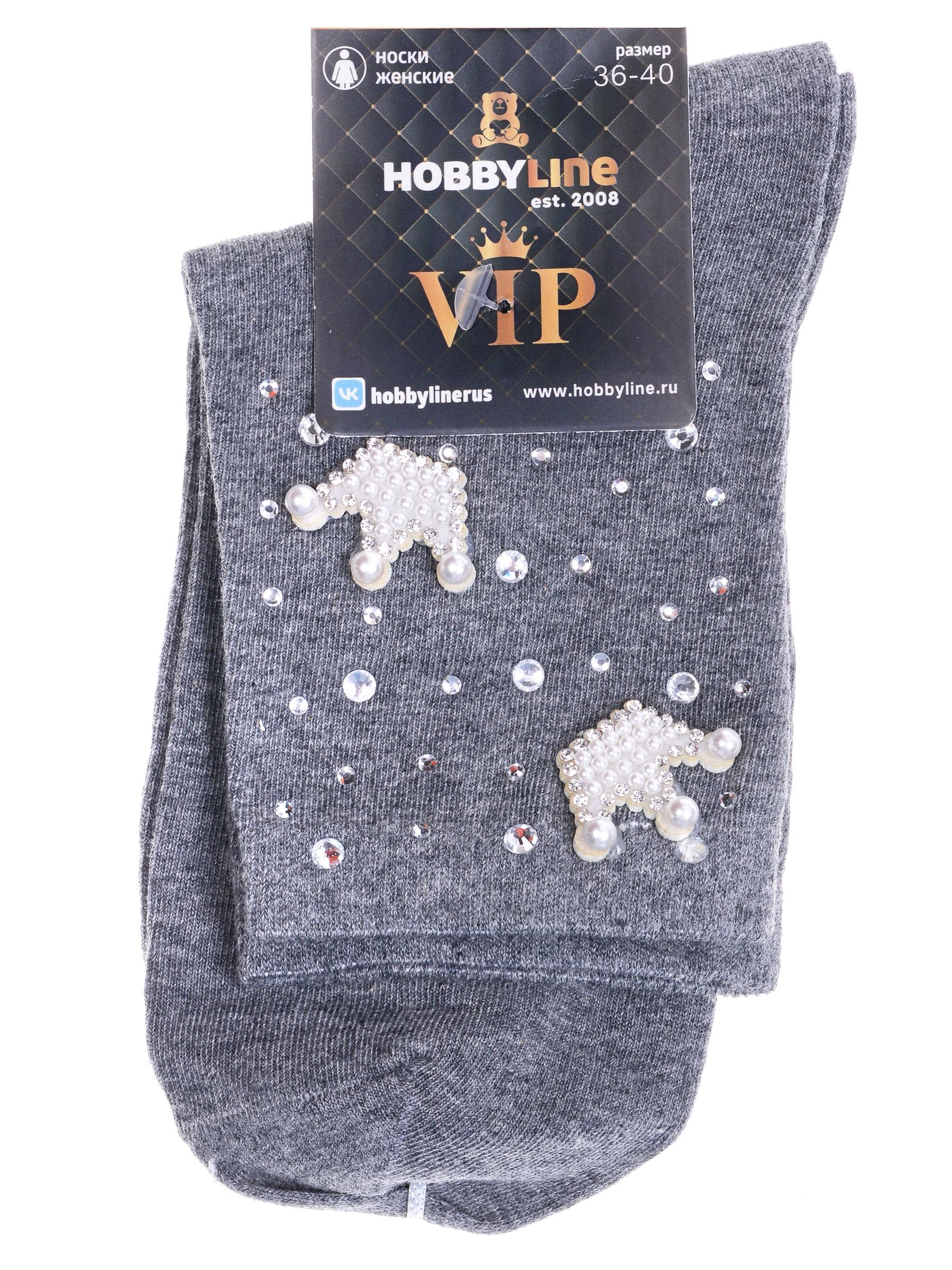 Комплект женских носков из 2 пар, круглогодичные, укороченные, цвет серый, с украшениями, шов обычный (не бесшовные), принт (рисунок): с узором, однотонный, состав: 75% хлопок, 23% полиамид, 2% эластан, арт. 2-Нжвип1000-16. Производитель «Китай, страна бренда - Россия» под брендом «Hobby line».