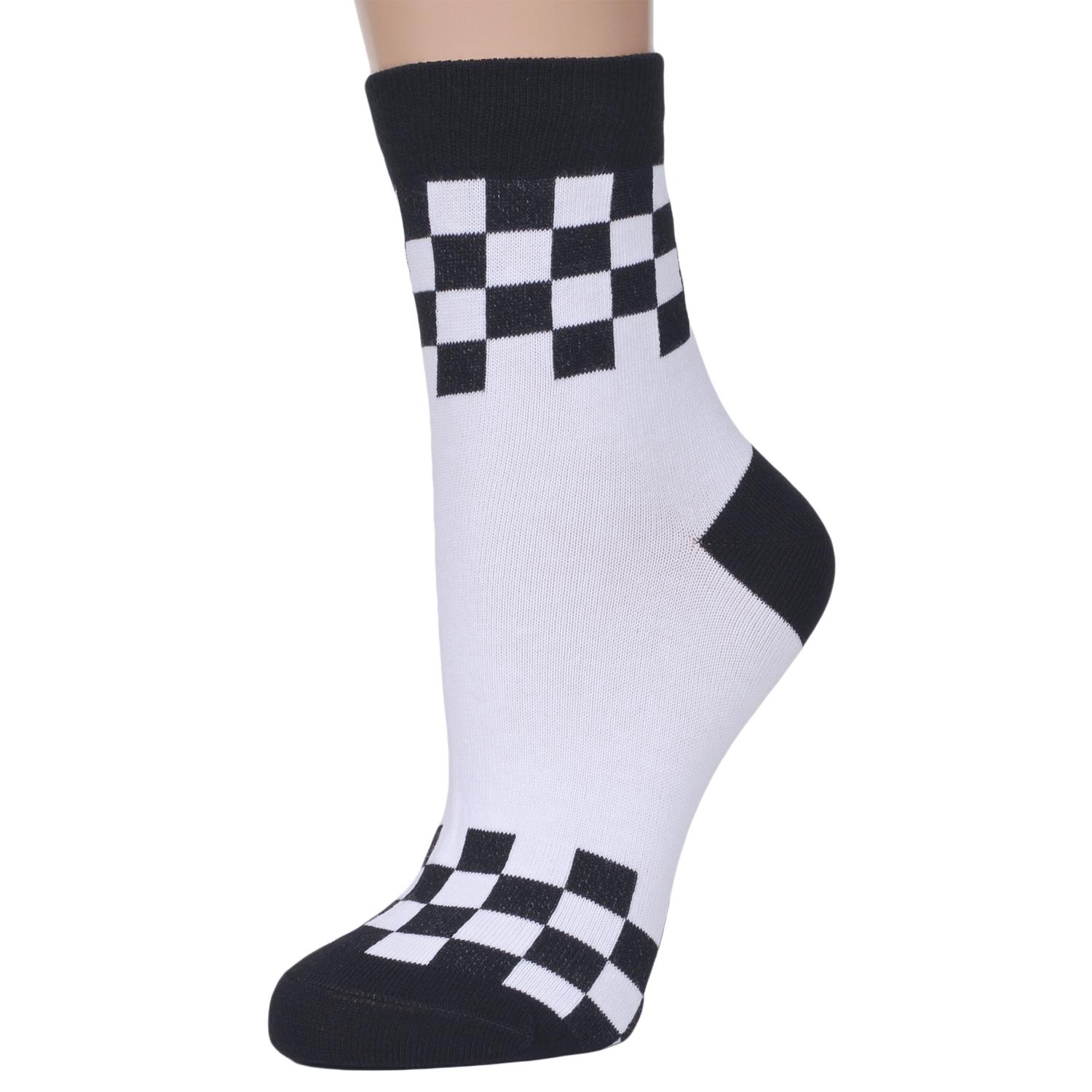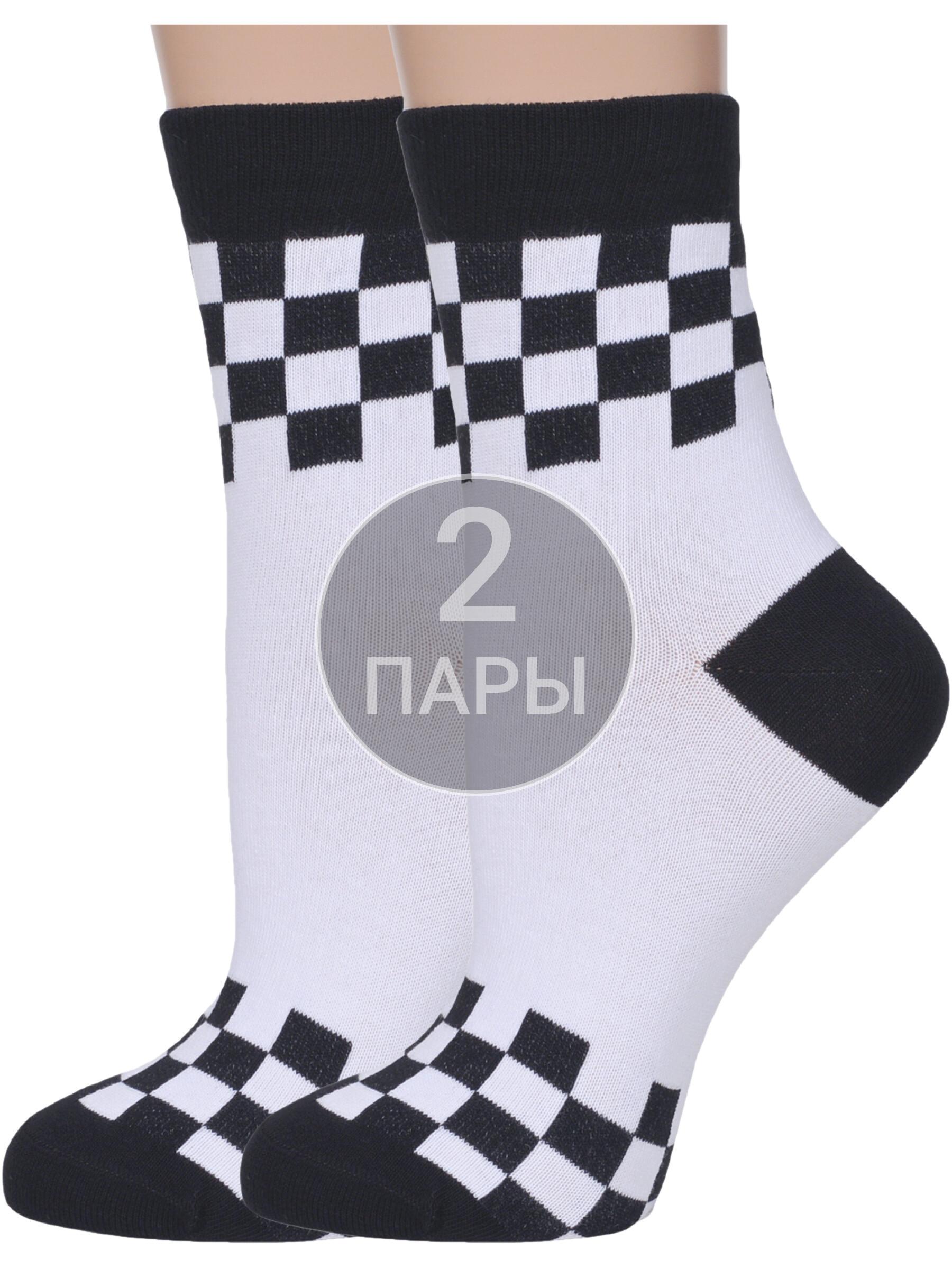 Комплект женских носков из 2 пар, круглогодичные, средней длины, цвет белый, классические, возможно бесшовные, принт (рисунок): клетка, геометрия, с узором, состав: 80% хлопок, 15% полиамид, 5% эластан или 88% хлопок, 10% полиамид, 2% эластан, арт. 2-G-3R1. Производитель «ХОХ» Россия под брендом «Хох».