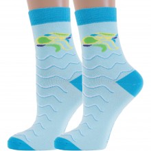 Комплект женских носков из 2 пар, круглогодичные, средней длины, цвет светло-бирюзовый, повседневные, возможно бесшовные, принт (рисунок): животные, с узором, крупные контрастные рисунки, состав: 80% хлопок, 15% полиамид, 5% эластан, арт. 2-G-3R10. Производитель «ХОХ» Россия под брендом «Хох».