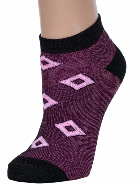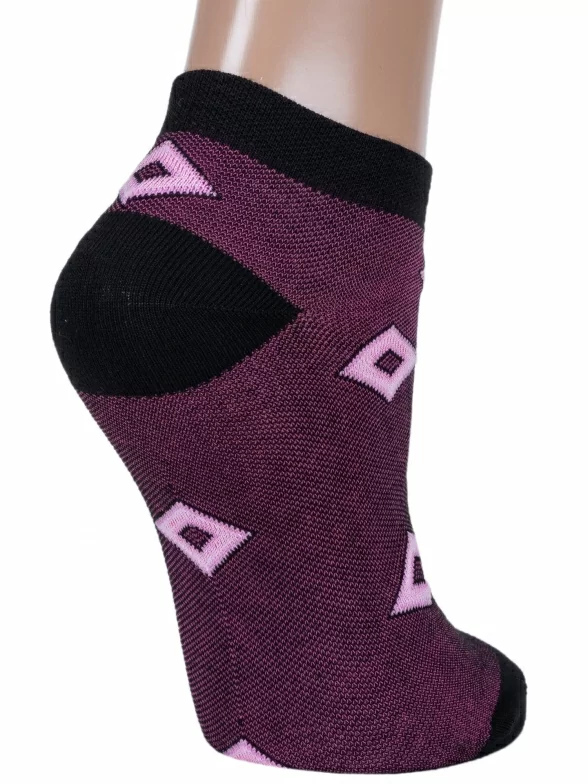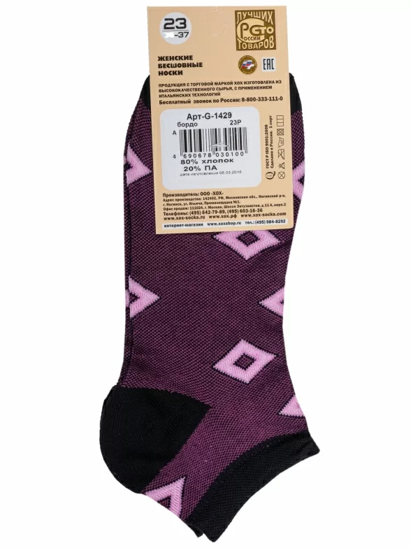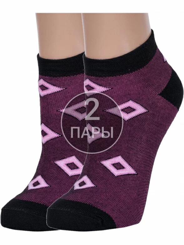 Комплект женских носков из 2 пар, летние, короткие, цвет бордовый, повседневные, возможно бесшовные, принт (рисунок): геометрия, с узором, состав: 80% хлопок, 20% полиамид, арт. 2-G-1429. Производитель «ХОХ» Россия под брендом «Хох».