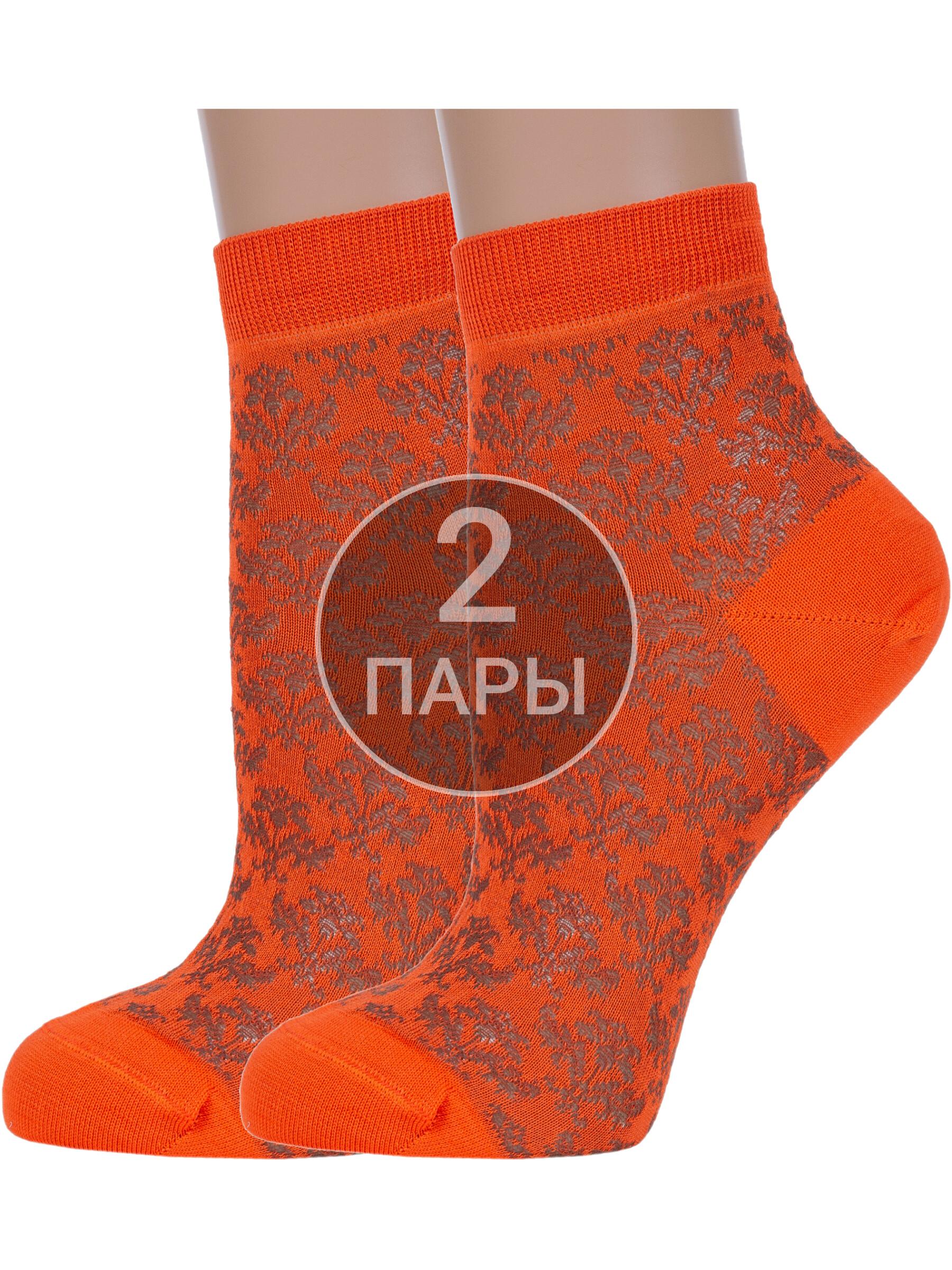 Комплект женских носков из 2 пар, круглогодичные или летние, укороченные, цвет оранжевый, повседневные, возможно бесшовные, принт (рисунок): цветы / растения, орнамент, с узором, состав: 80% мерсеризованный хлопок, 20% полиамид, арт. 2-GM-1402. Производитель «ХОХ» Россия под брендом «Хох».