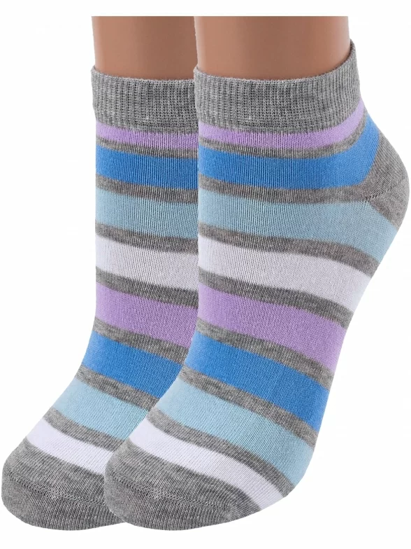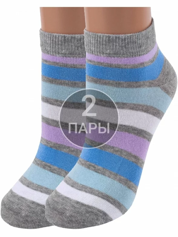 Комплект женских носков из 2 пар, круглогодичные или летние, короткие, цвет серый, классические, возможно бесшовные, принт (рисунок): полоски, с узором, состав: 80% хлопок, 15% полиамид, 5% эластан или 88% хлопок, 10% полиамид, 2% эластан, арт. 2-G-3R5. Производитель «ХОХ» Россия под брендом «Хох».