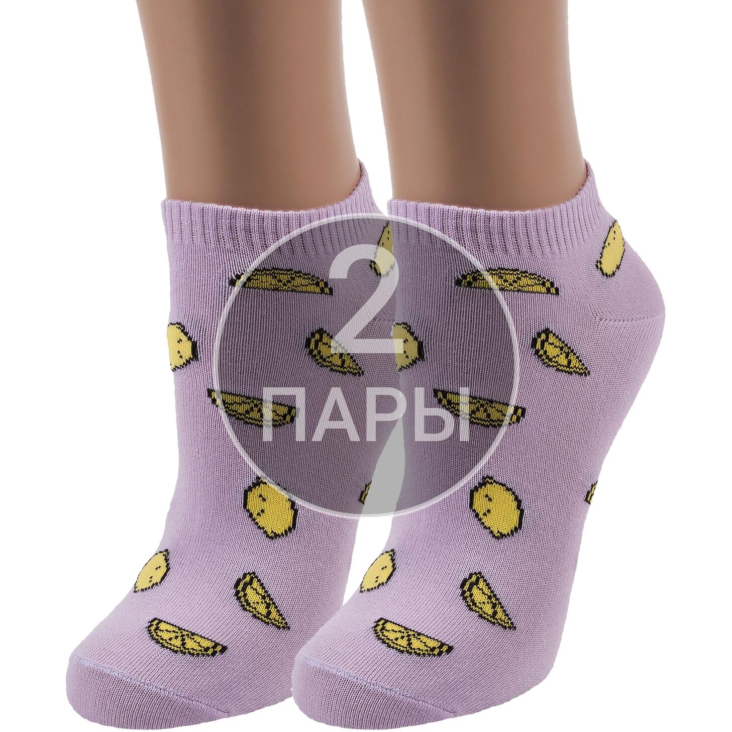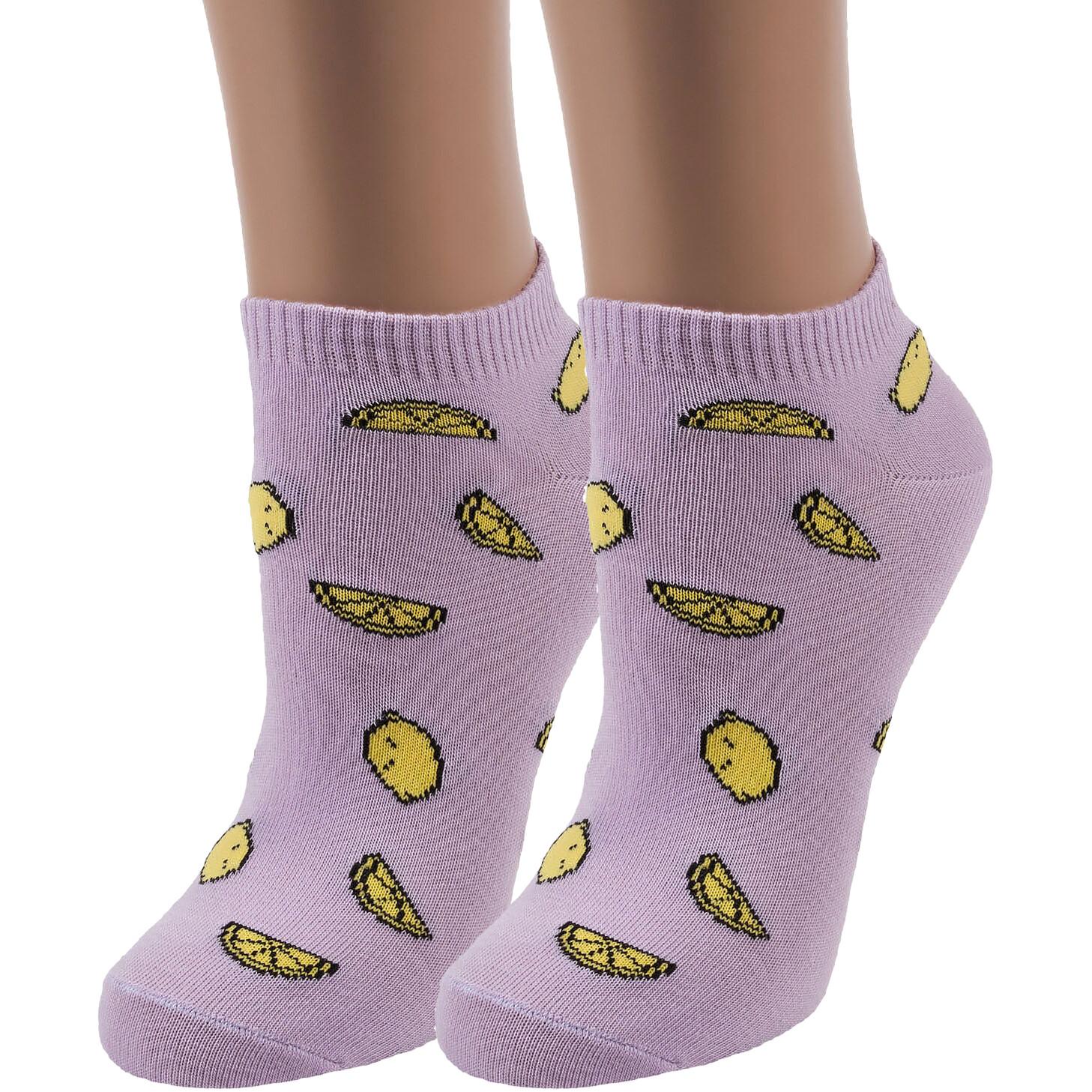 Комплект женских носков из 2 пар, межсезонные или летние, короткие, цвет сиреневый, повседневные, возможно бесшовные, принт (рисунок): овощи / фрукты / ягоды, еда и напитки, с узором, крупные контрастные рисунки, состав: 80% хлопок, 15% полиамид, 5% эластан или 88% хлопок, 10% полиамид, 2% эластан, арт. 2-G-3R22. Производитель «ХОХ» Россия под брендом «Хох».